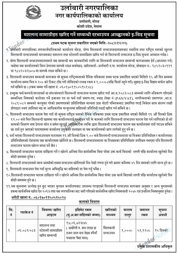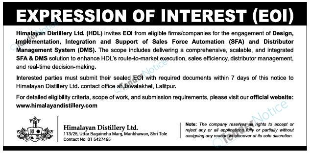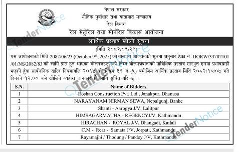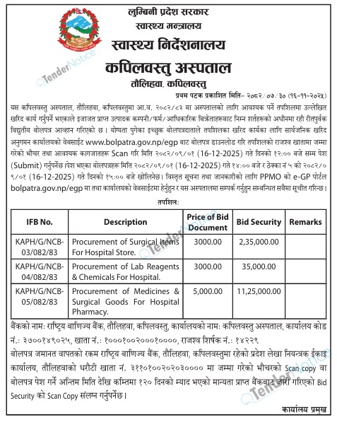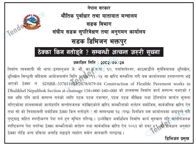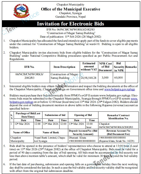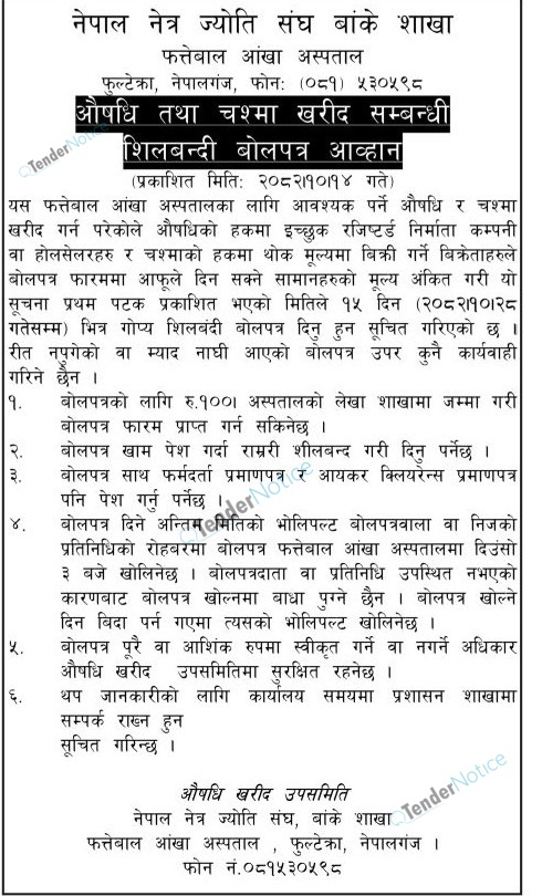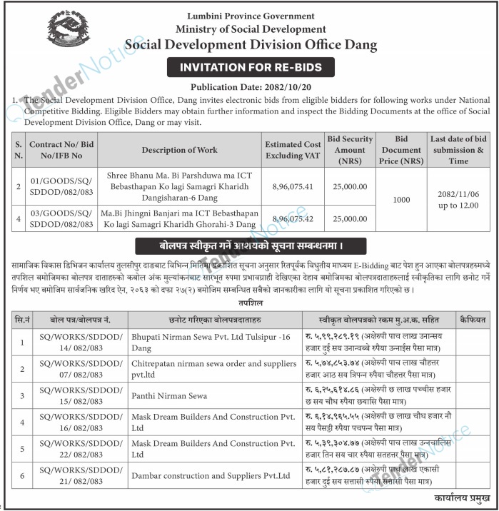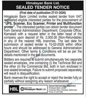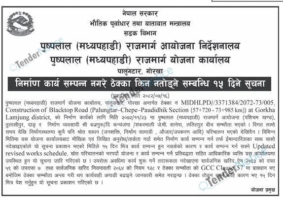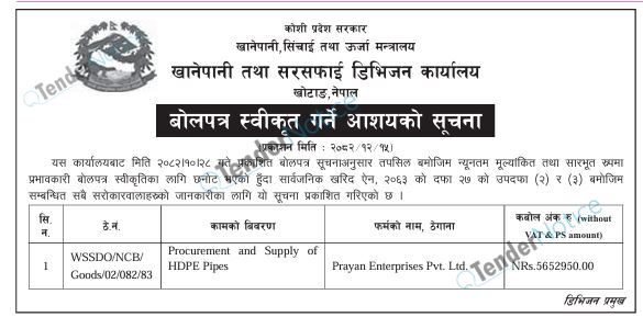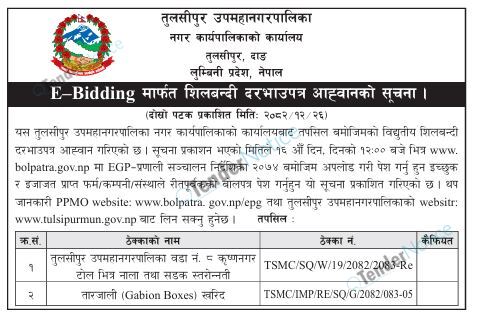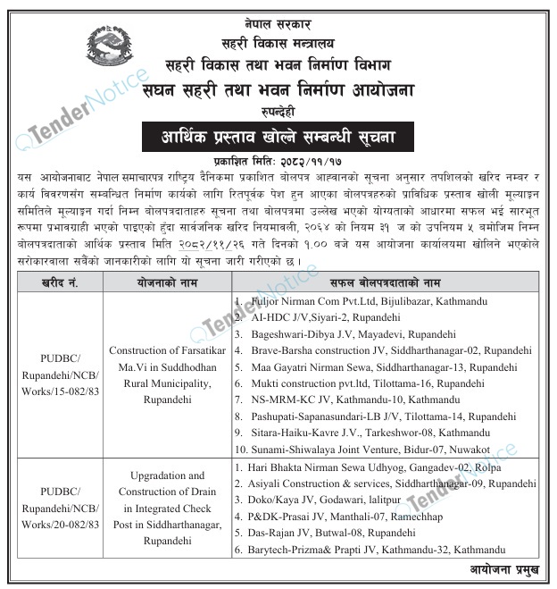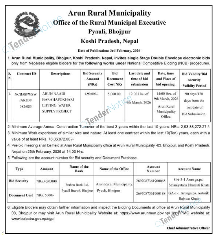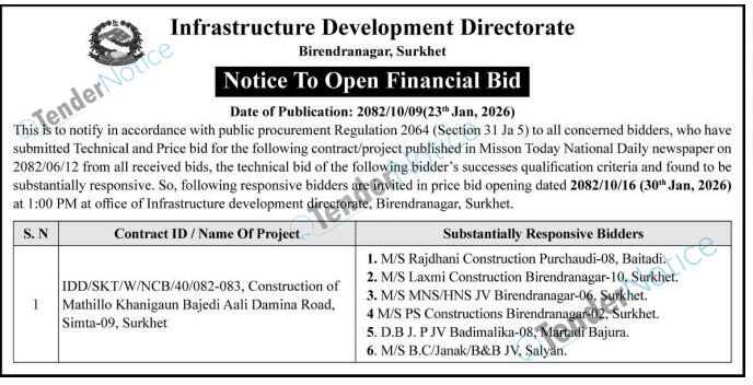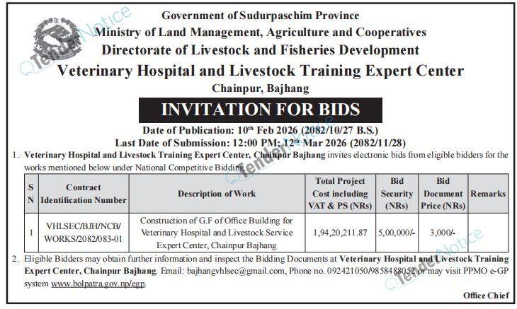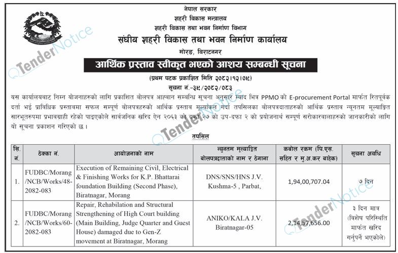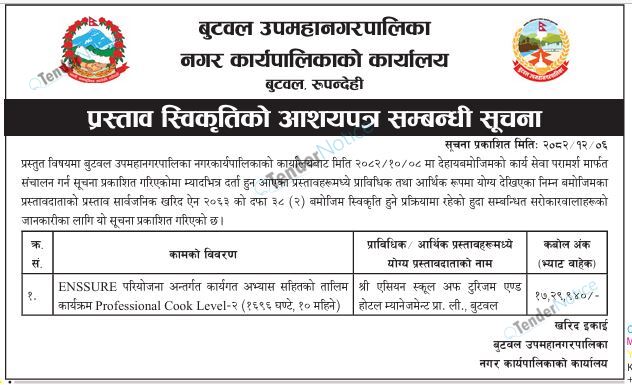 TenderNotice.com.np is one of the key sources of information for online tenders news and information. Those sources include Invitation of Proposal, Quotation, Request For Proposal (RFP) including Technical Proposal and Financial Proposal, Expression of Interest (EOI), Enlistment etc.