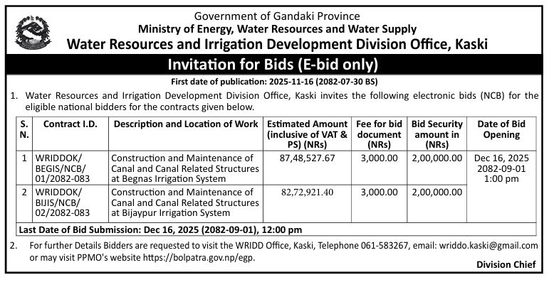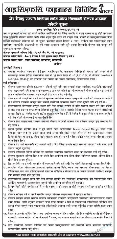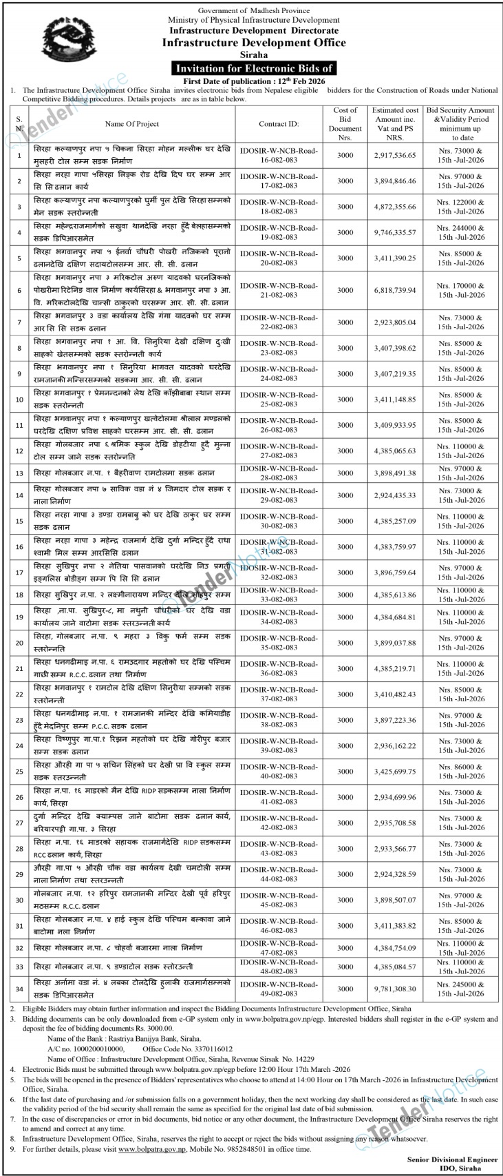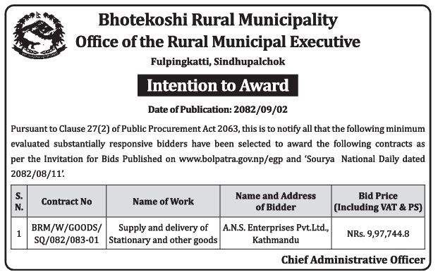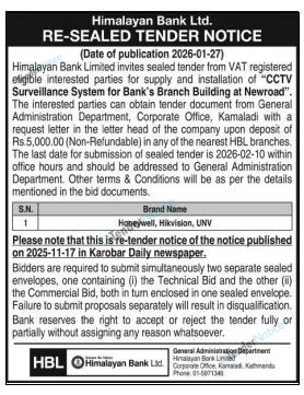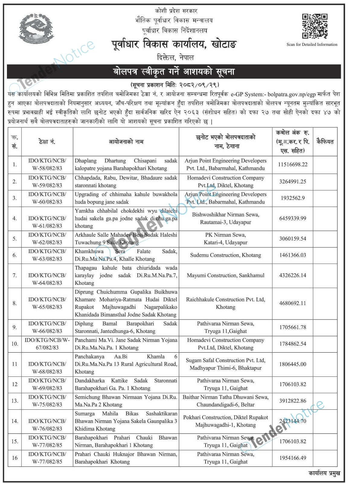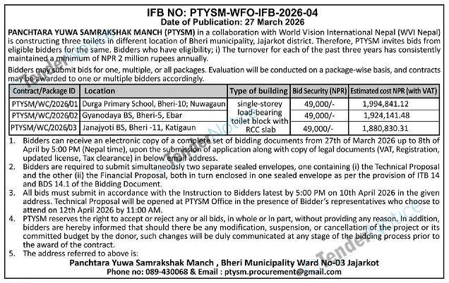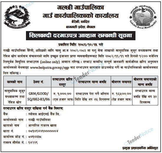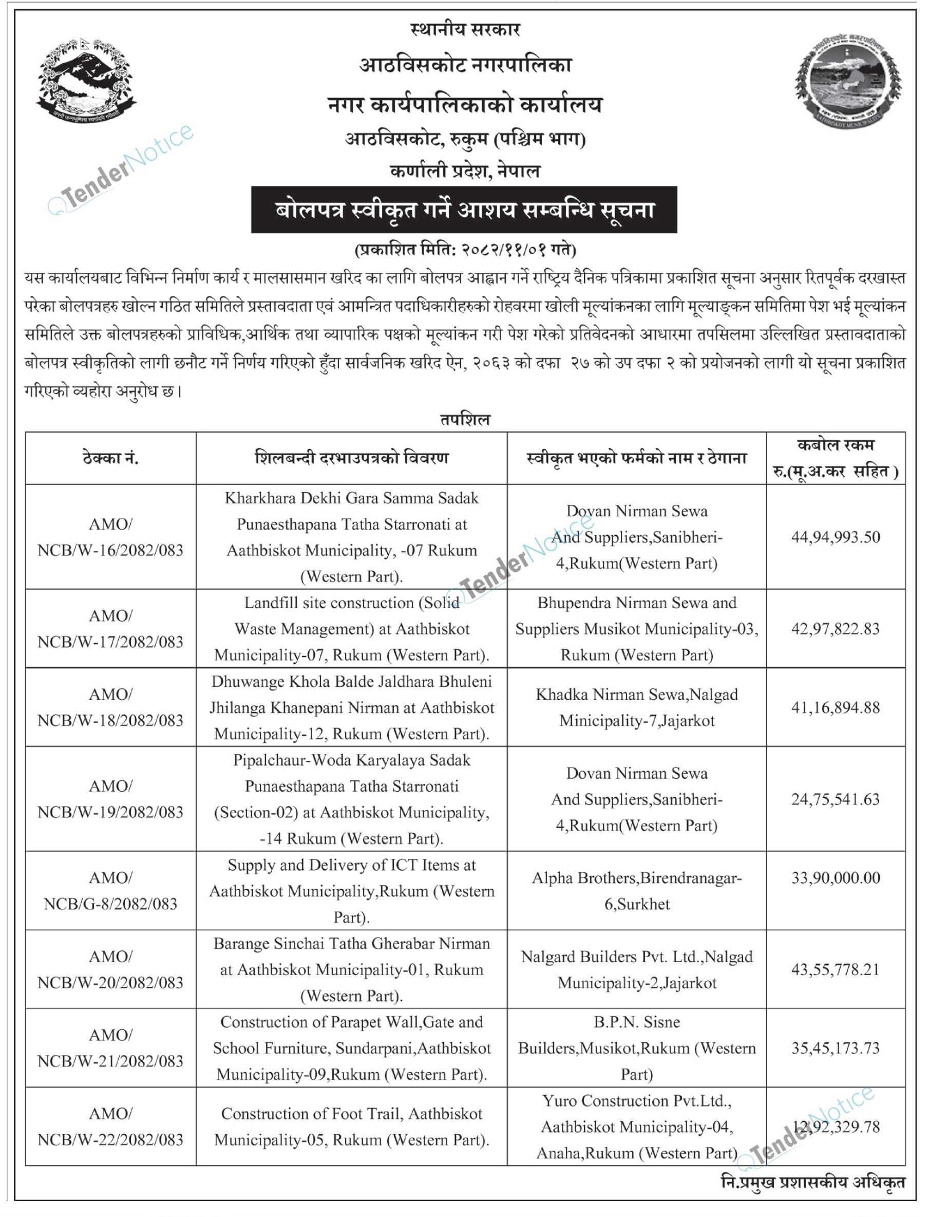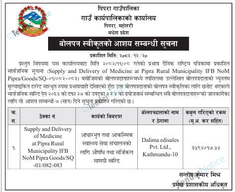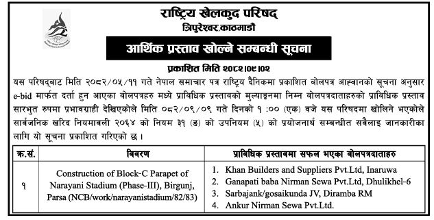TenderNotice.com.np is one of the key sources of information for online tenders news and information. Those sources include Invitation of Proposal, Quotation, Request For Proposal (RFP) including Technical Proposal and Financial Proposal, Expression of Interest (EOI), Enlistment etc.