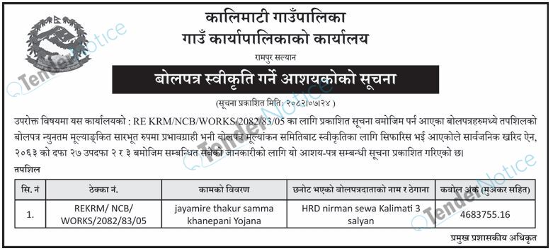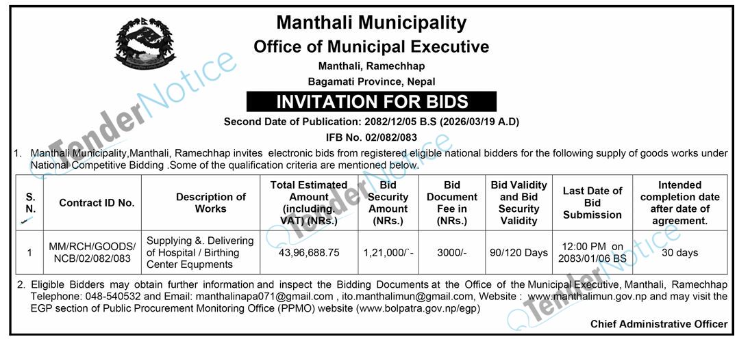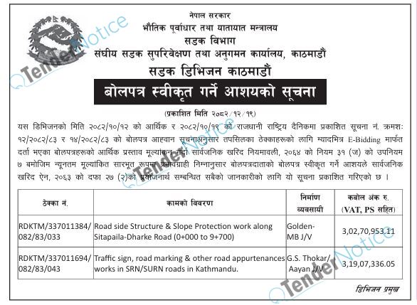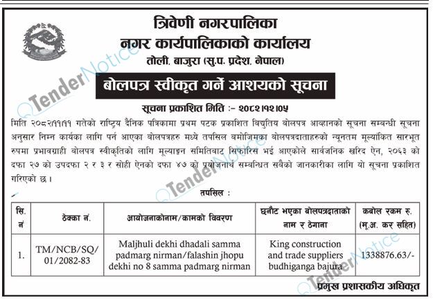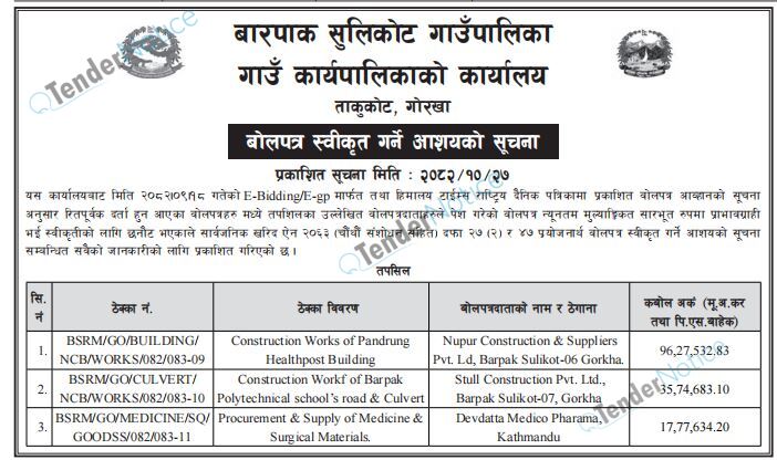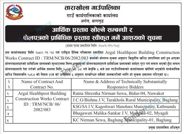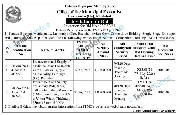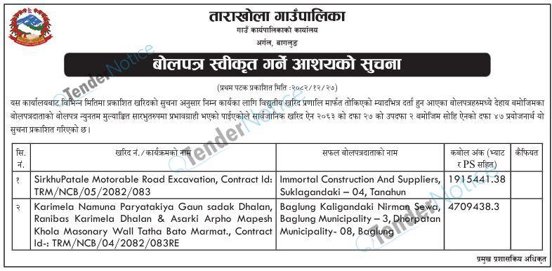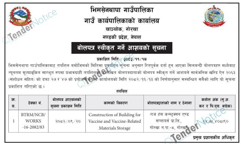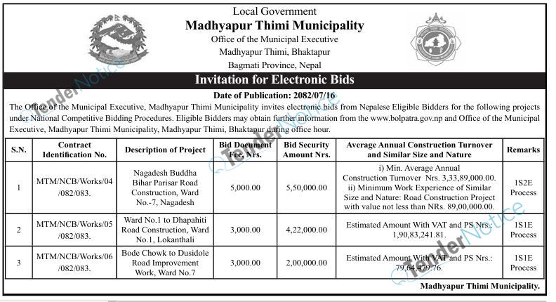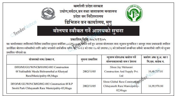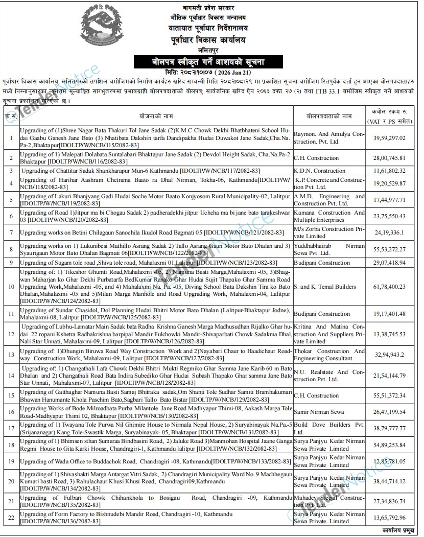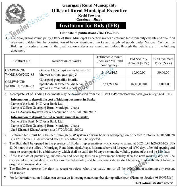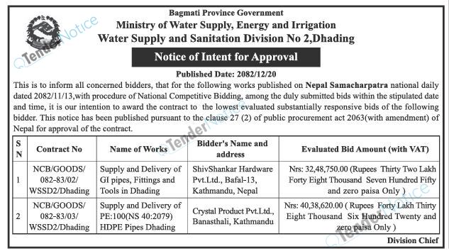 TenderNotice.com.np is one of key informative Tender Sites in Nepal providing all notices, news and information of Bids and Tenders.