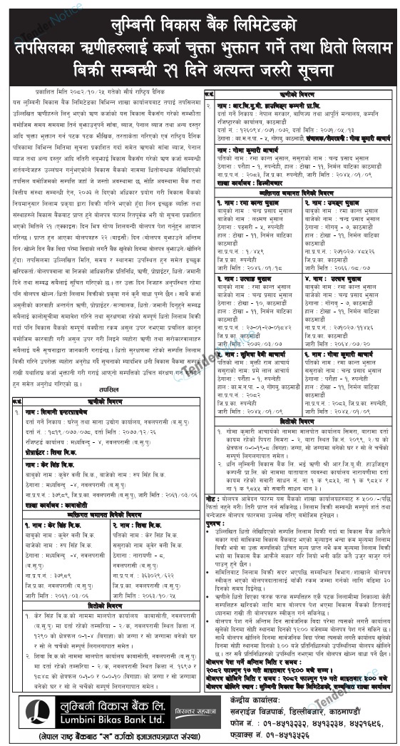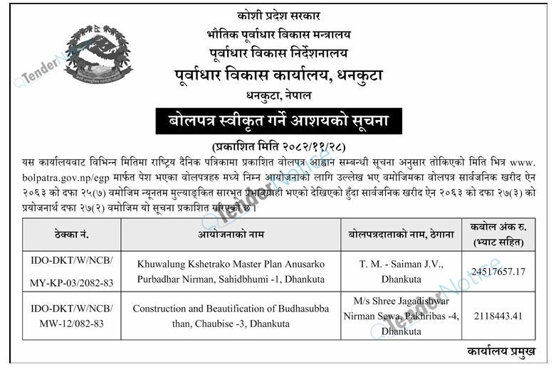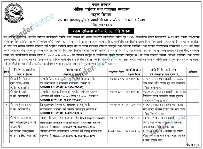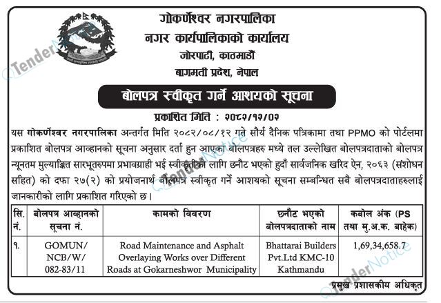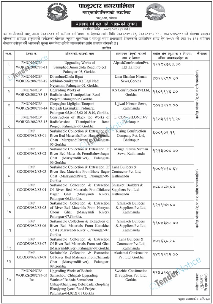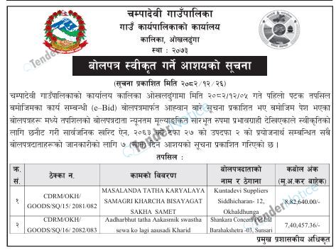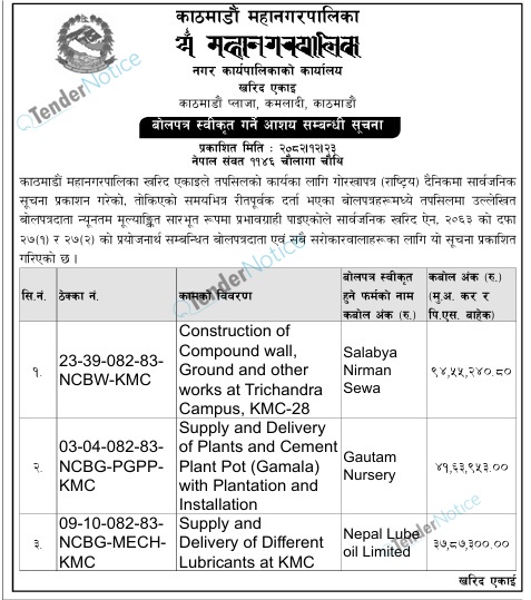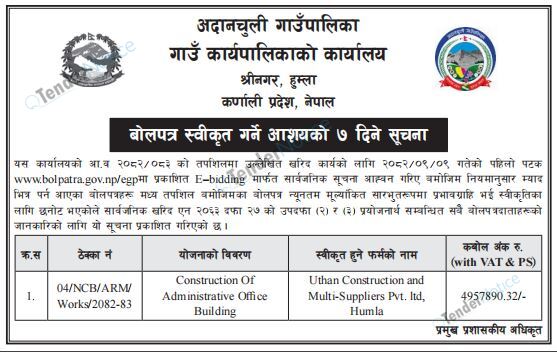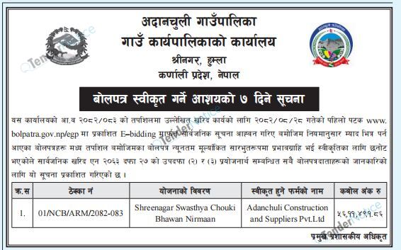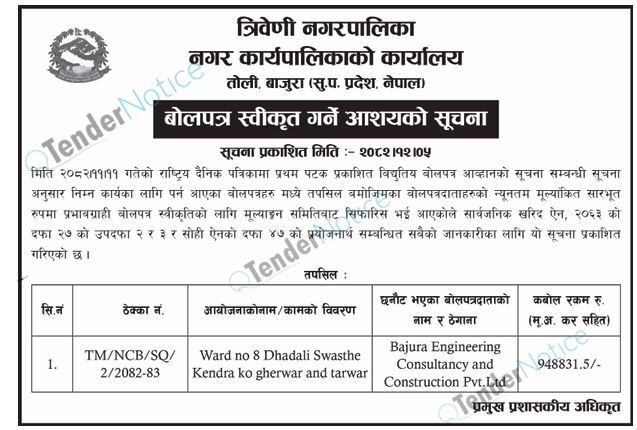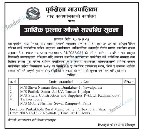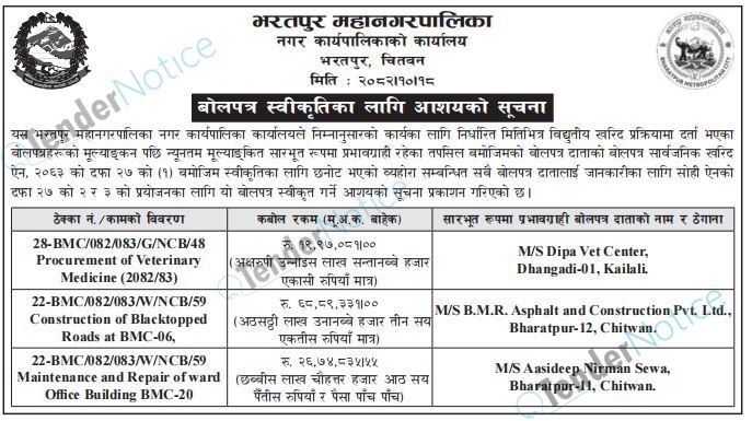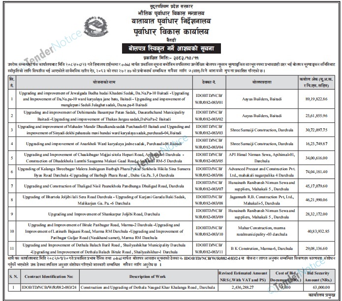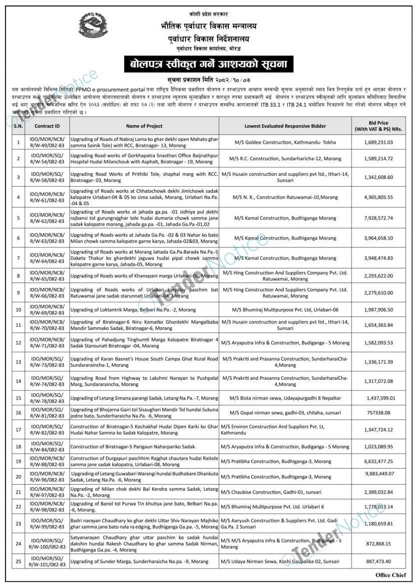 TenderNotice.com.np is one of key informative Tender Sites in Nepal providing all notices, news and information of Bids and Tenders.