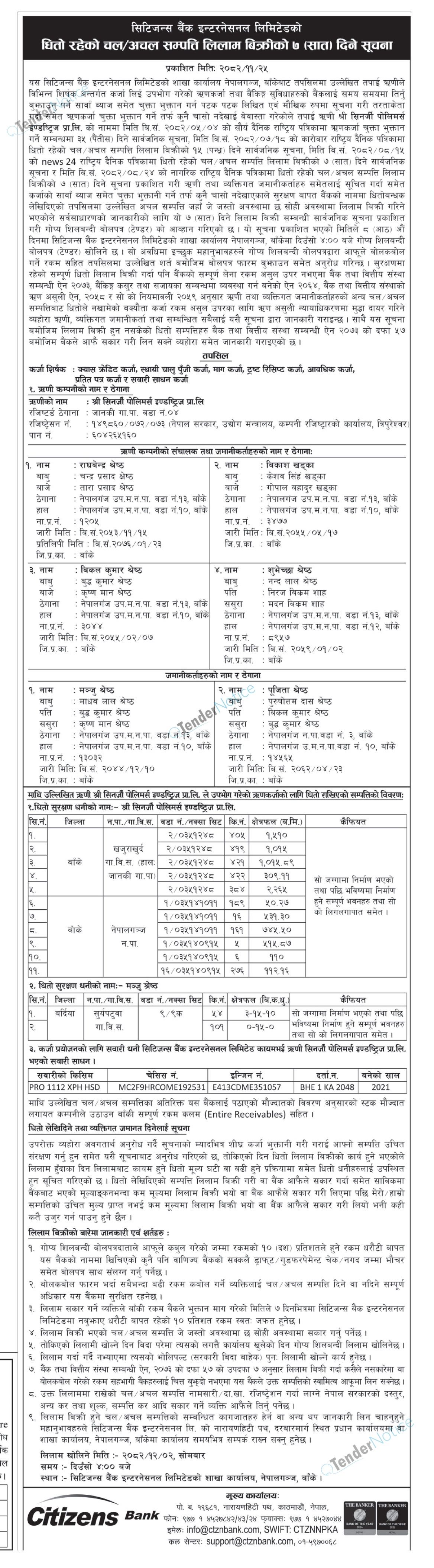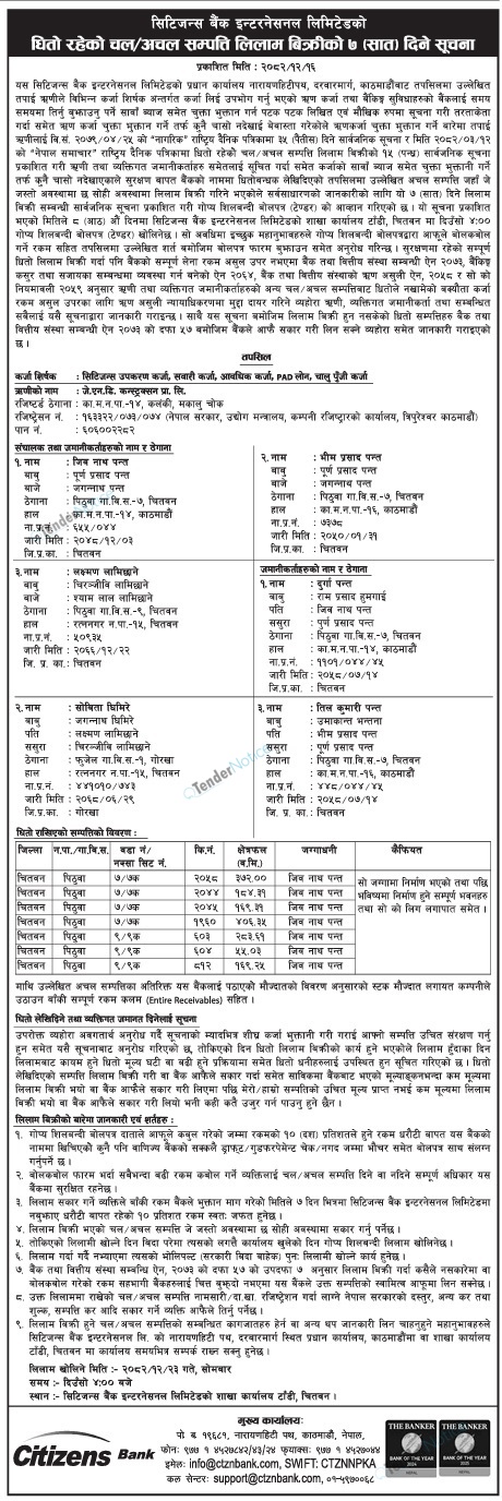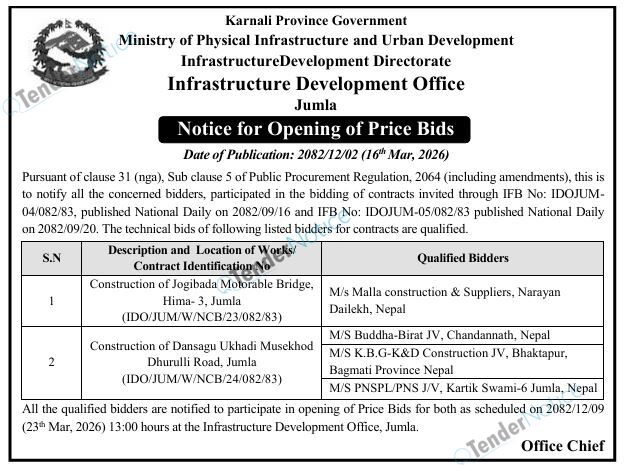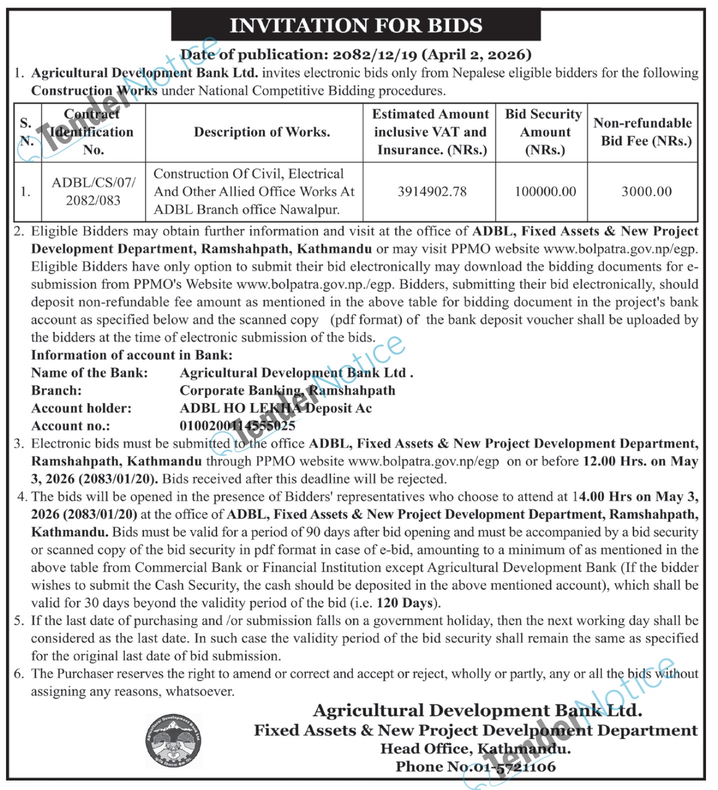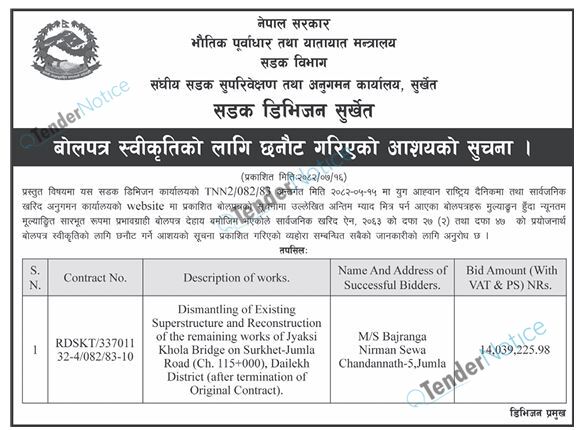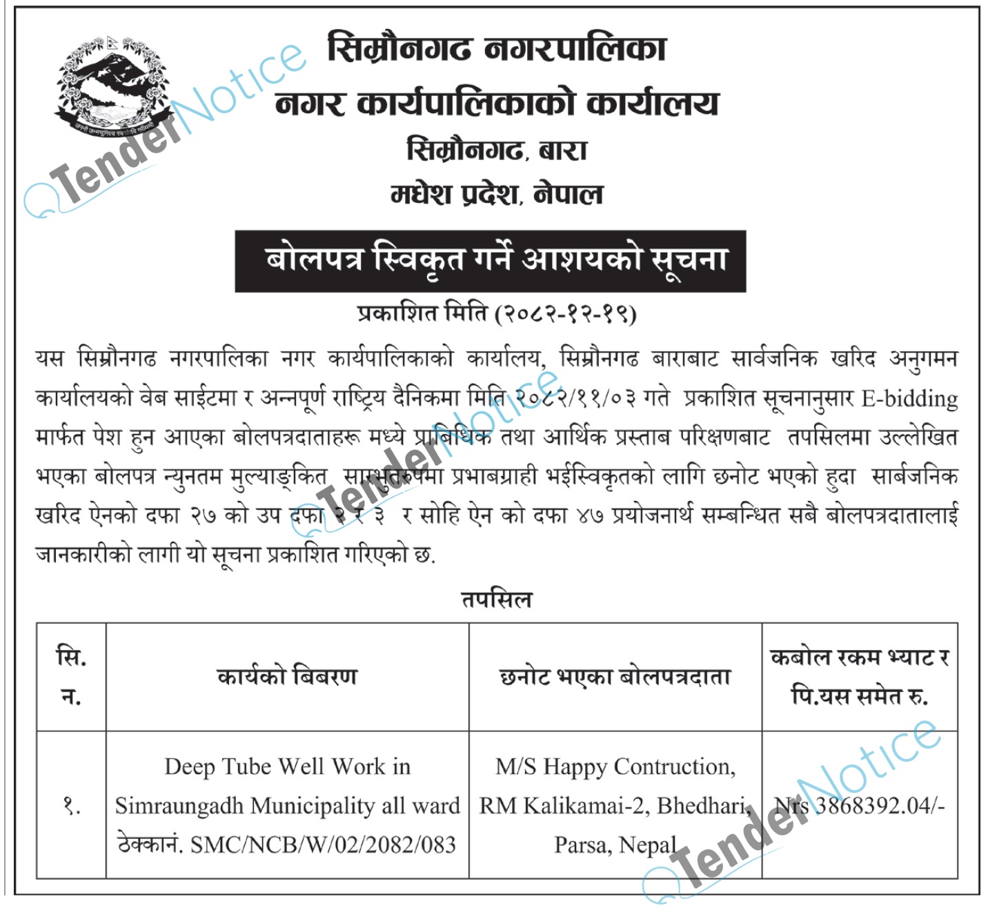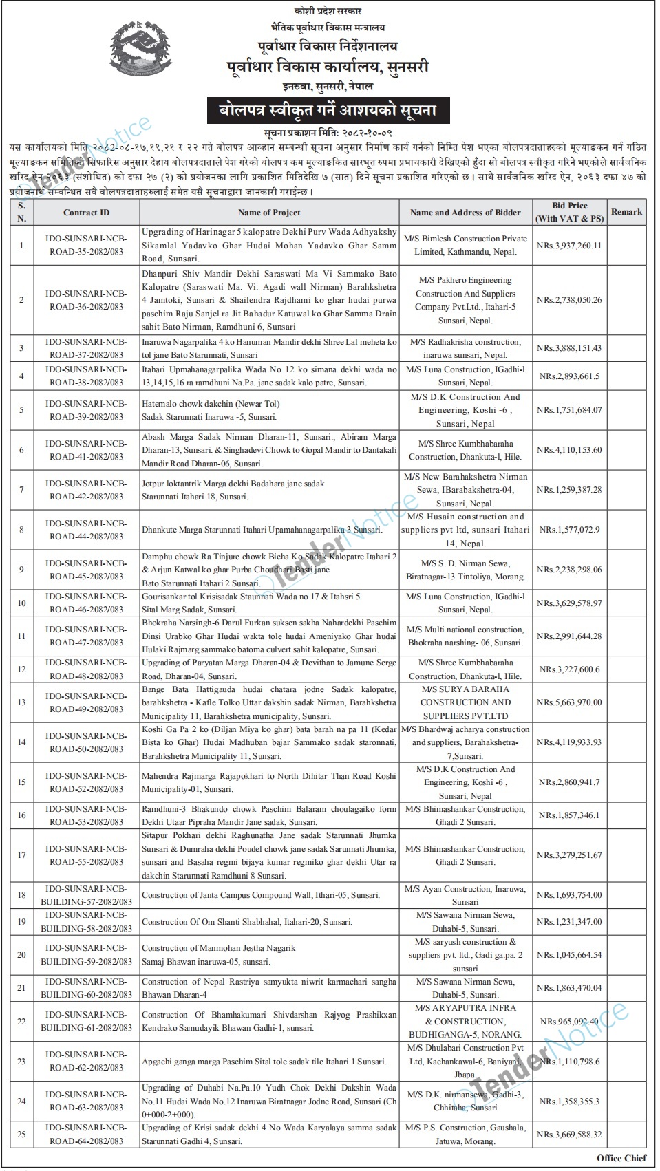 TenderNotice.com.np is one of key informative Tender Sites in Nepal providing all notices, news and information of Bids and Tenders.