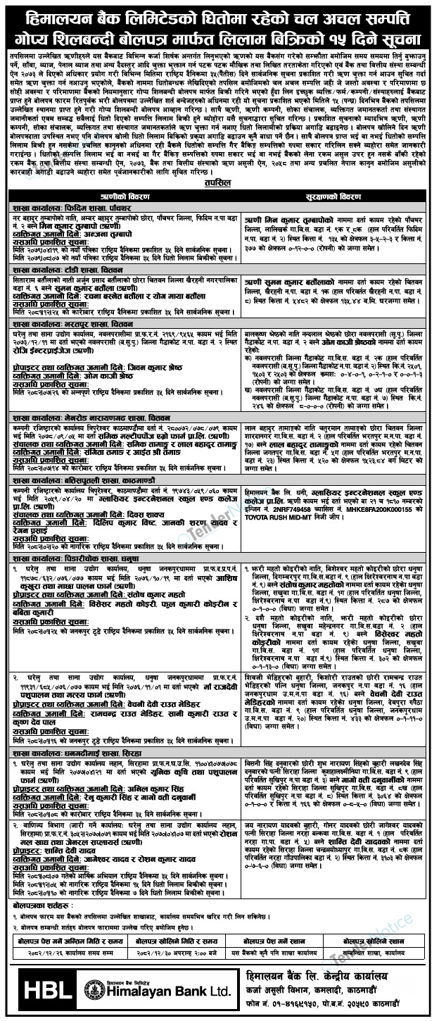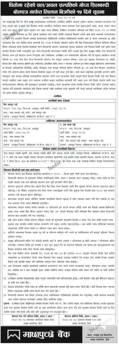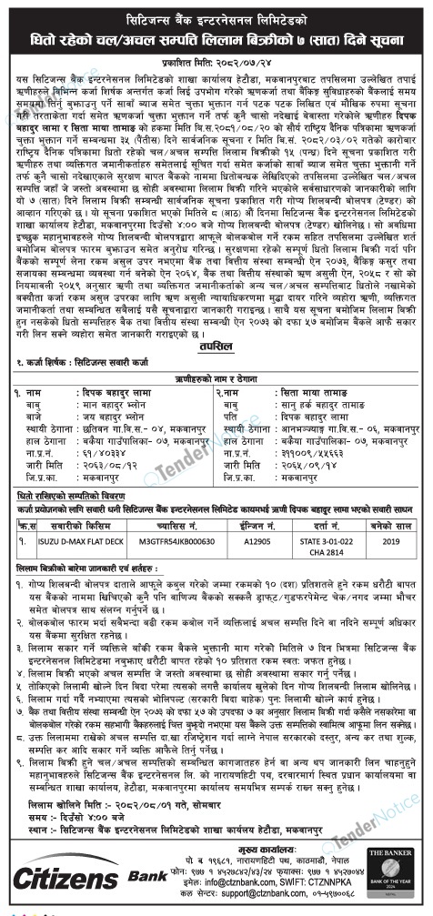 TenderNotice.com.np primarily provides all Bids and Tender notices published in all daily newspaper of Nepal.Tender Notices from Government, Private and Non Government and any other institutions are posted online and the users can access and download tender documents.