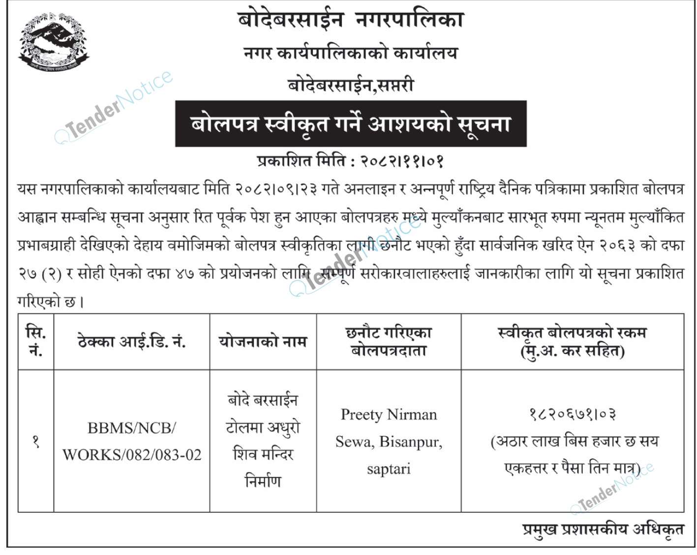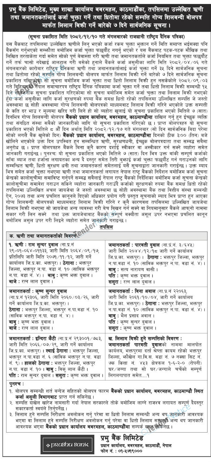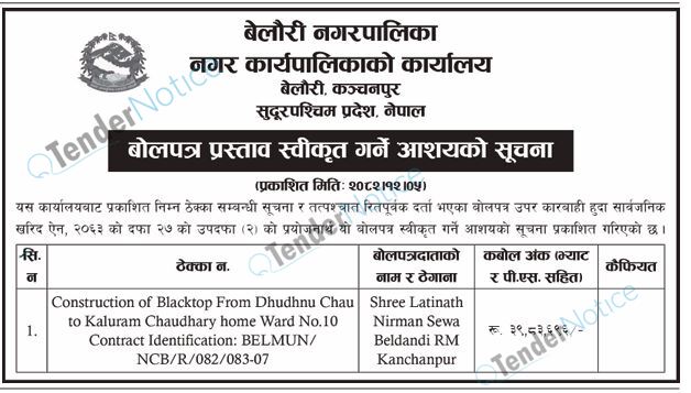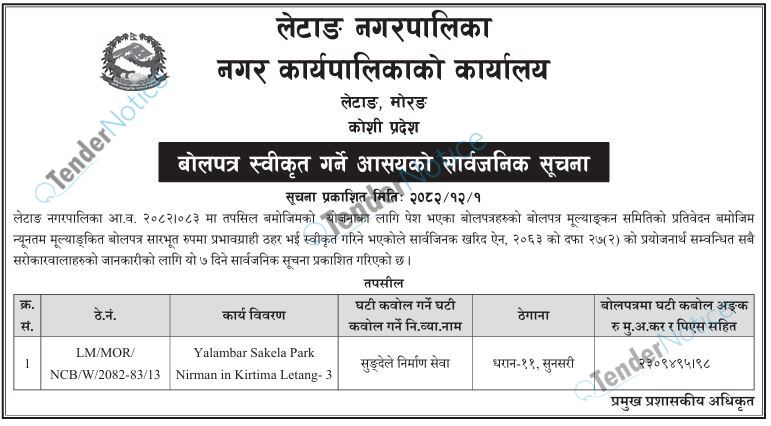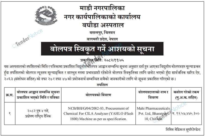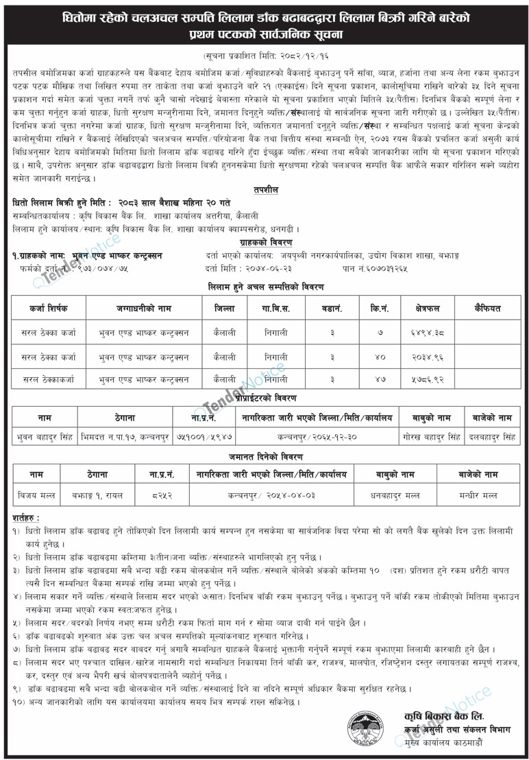 Tendernotice.com.np is an online Bid and Tender Portal Services that helps to manage all bids, tenders and related notices through website. All tender notices published in various newspapers in Nepal are collected and posted in the portal site daily basis. Users can access and download tender documents, receive through their emails right after tender publish and manage bids and tenders completely through online after registration. It simply facilitates and manages all bids and tender process in a simple manner for all users.