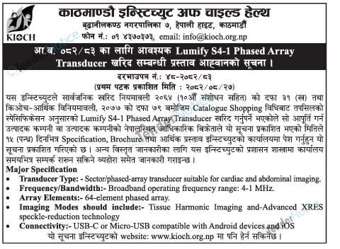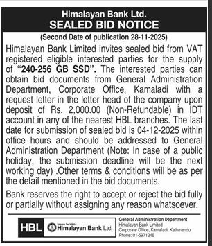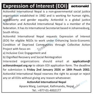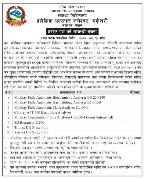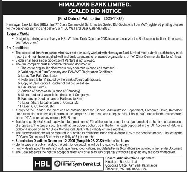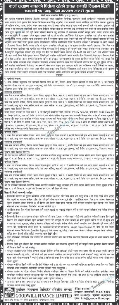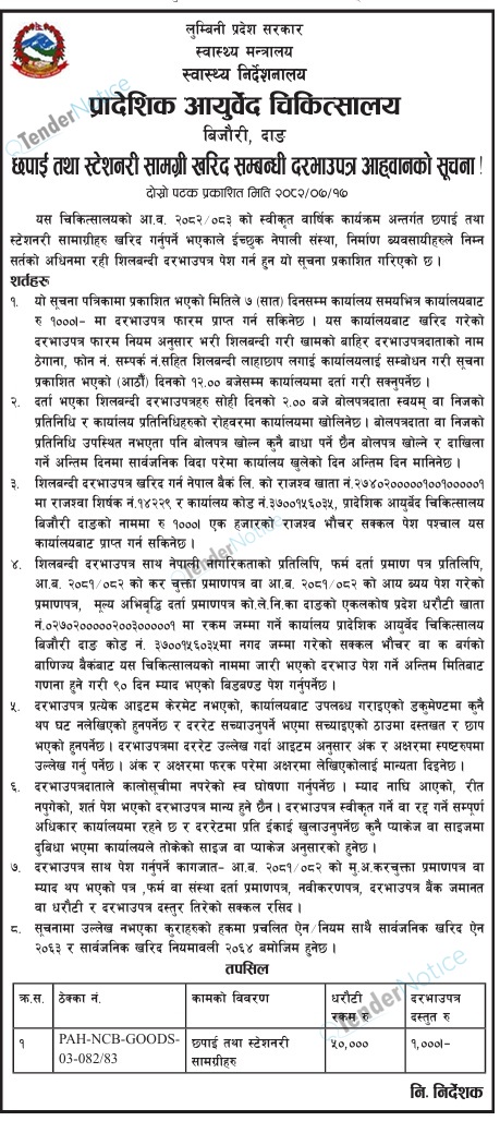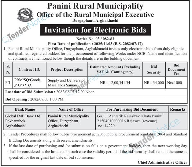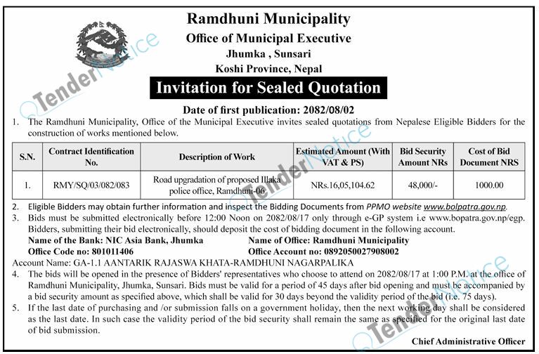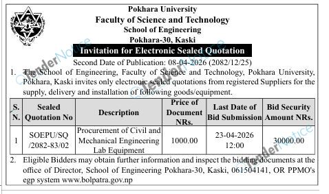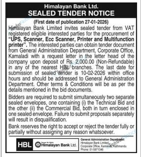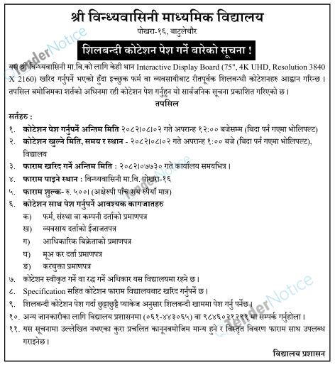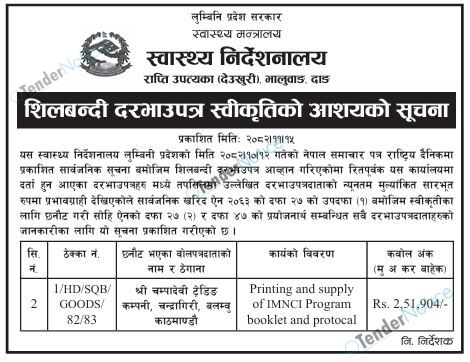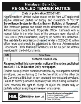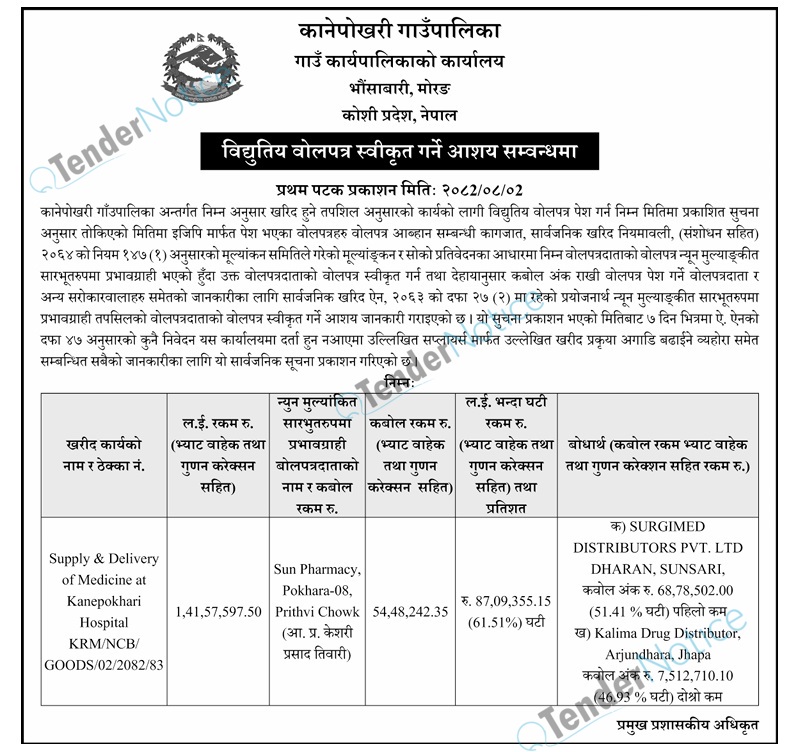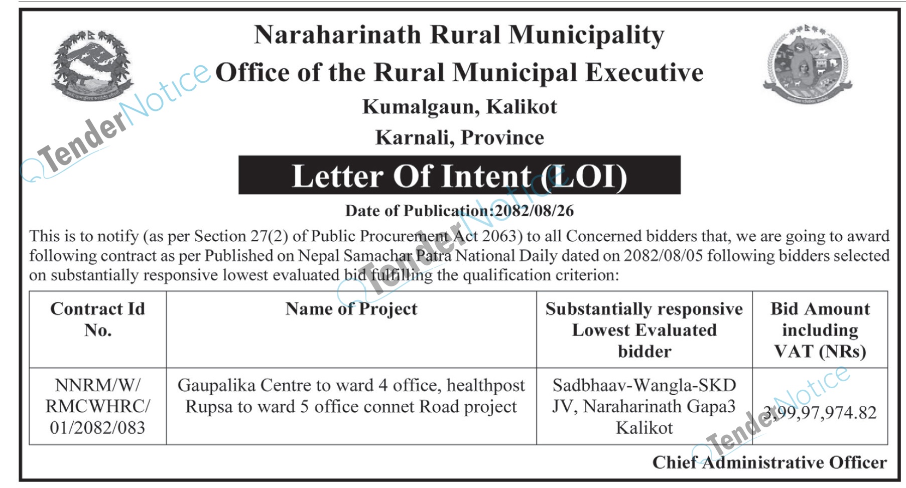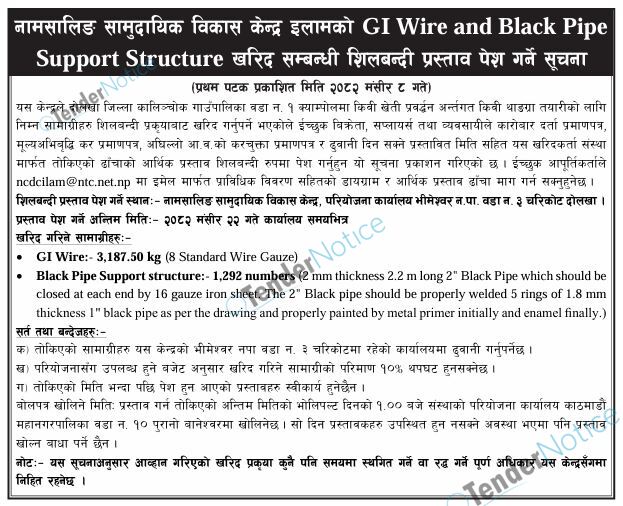 TenderNotice.com.np is one of the key sources of information for online tenders news and information. Those sources include Invitation of Proposal, Quotation, Request For Proposal (RFP) including Technical Proposal and Financial Proposal, Expression of Interest (EOI), Enlistment etc.