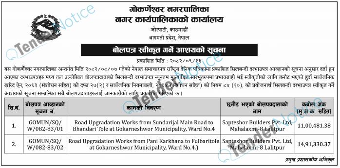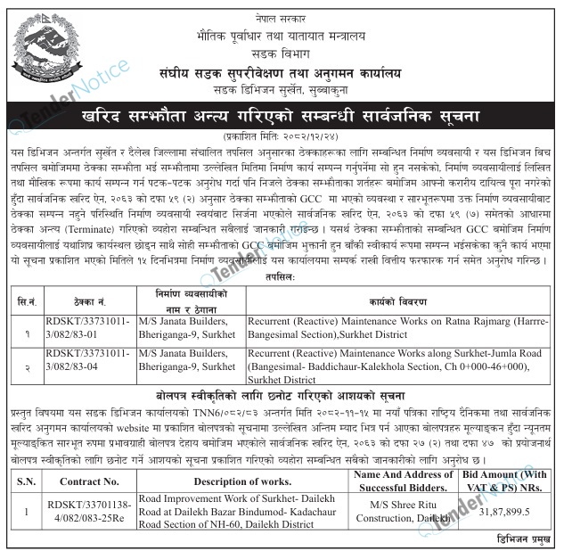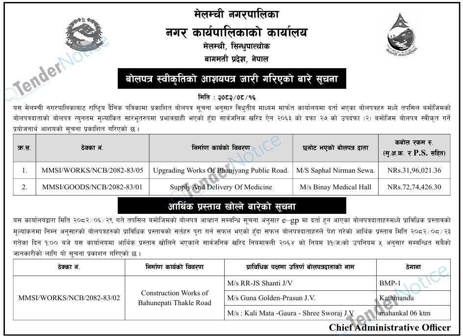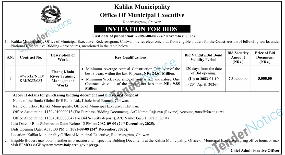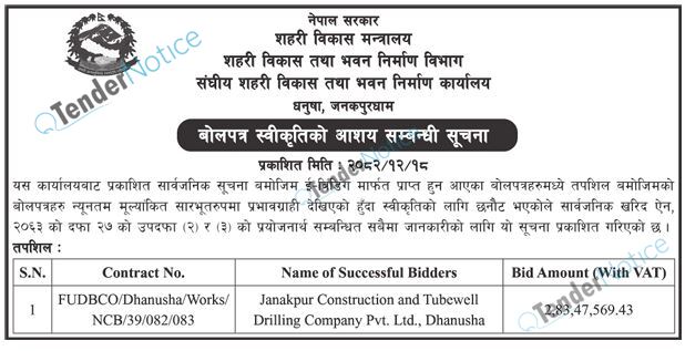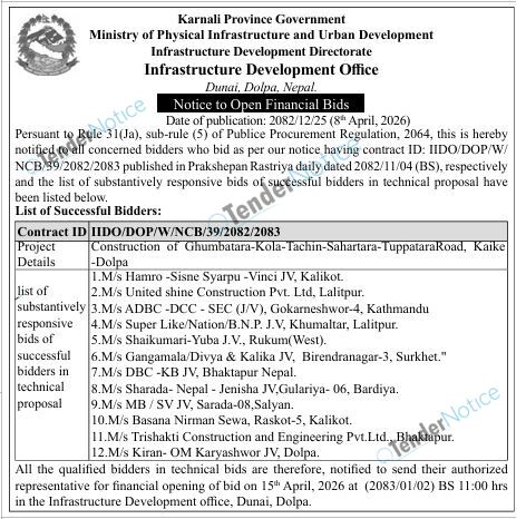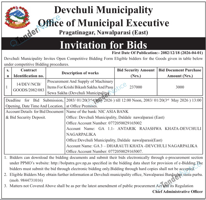 TenderNotice.com.np is one of key informative Tender Sites in Nepal providing all notices, news and information of Bids and Tenders.