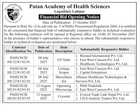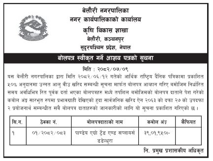 Tendernotice.com.np is an online Bid and Tender Portal Services that helps to manage all bids, tenders and related notices through website. All tender notices published in various newspapers in Nepal are collected and posted in the portal site daily basis. Users can access and download tender documents, receive through their emails right after tender publish and manage bids and tenders completely through online after registration. It simply facilitates and manages all bids and tender process in a simple manner for all users.