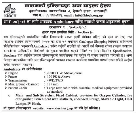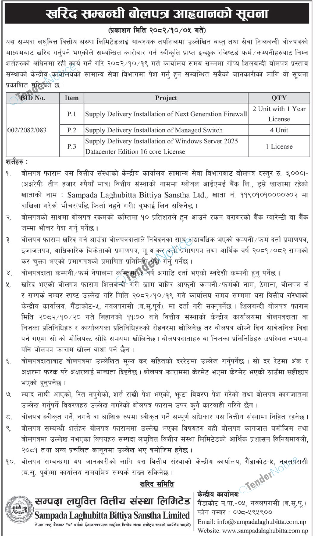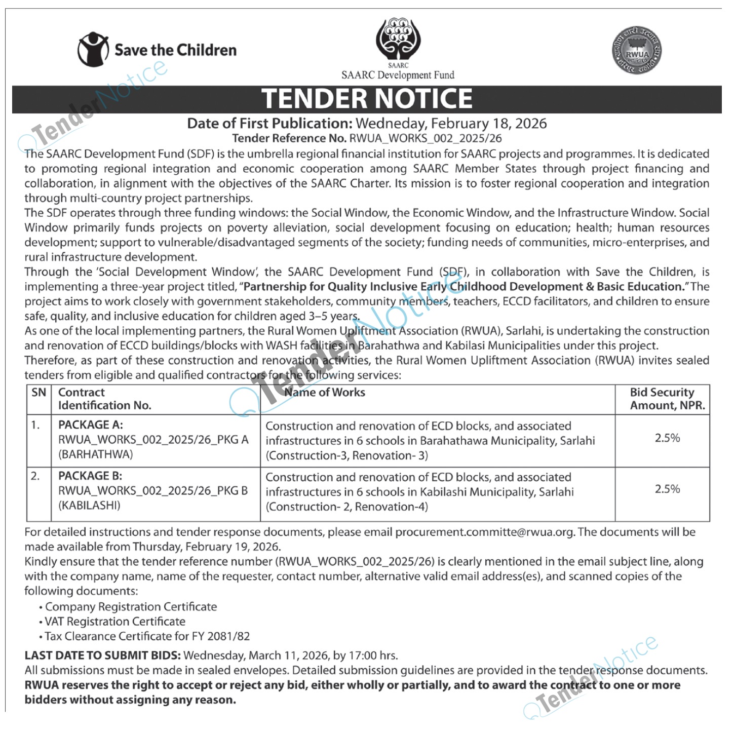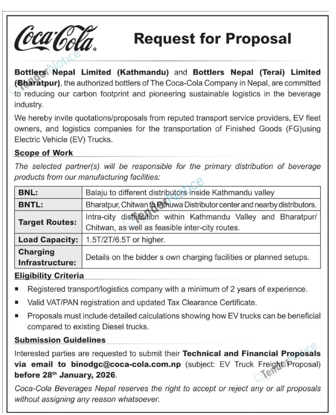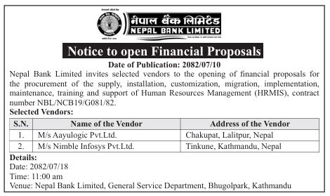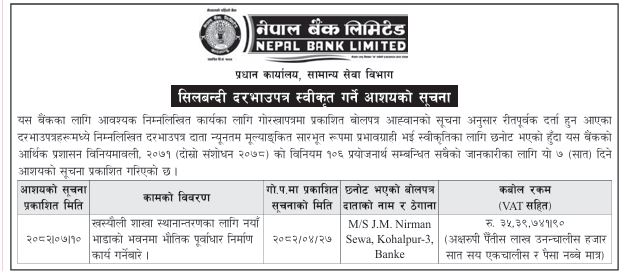 TenderNotice.com.np is one of the key sources of information for online tenders news and information. Those sources include Invitation of Proposal, Quotation, Request For Proposal (RFP) including Technical Proposal and Financial Proposal, Expression of Interest (EOI), Enlistment etc.