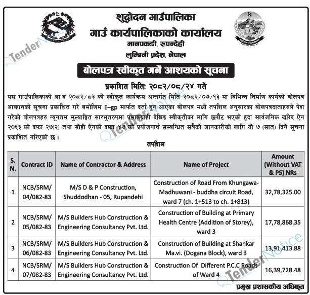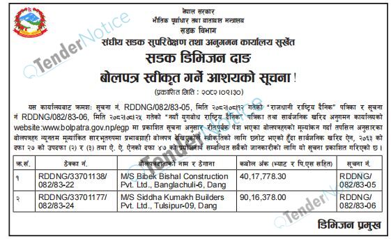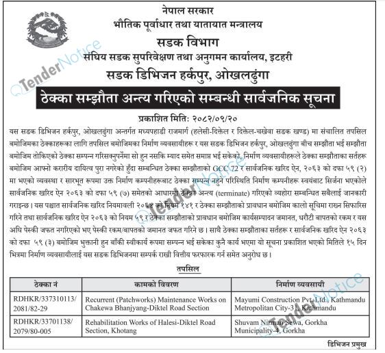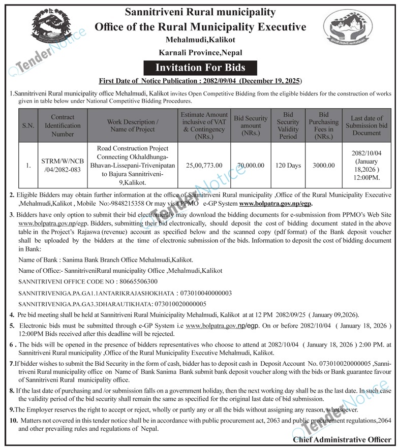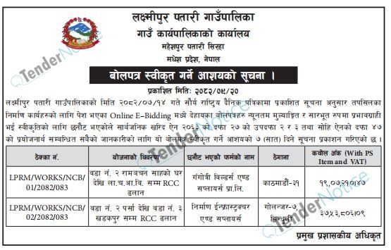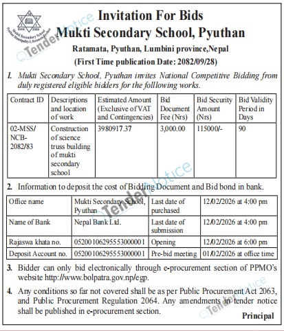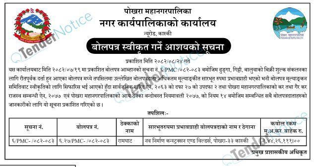 TenderNotice.com.np is one of key informative Tender Sites in Nepal providing all notices, news and information of Bids and Tenders.