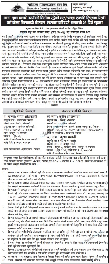 TenderNotice.com.np primarily provides all Bids and Tender notices published in all daily newspaper of Nepal.Tender Notices from Government, Private and Non Government and any other institutions are posted online and the users can access and download tender documents.