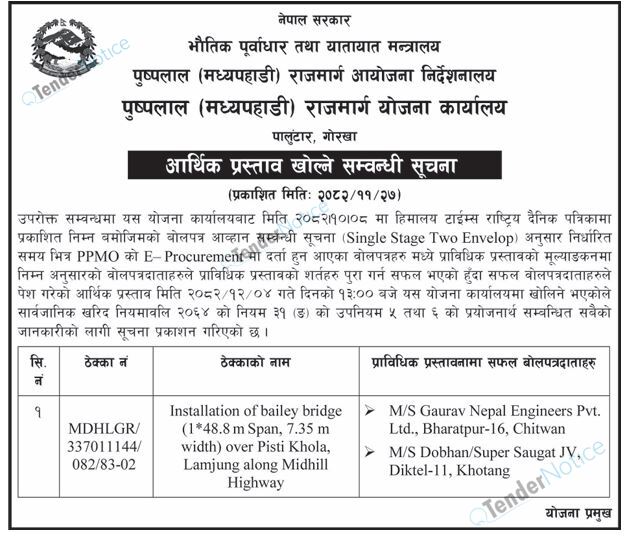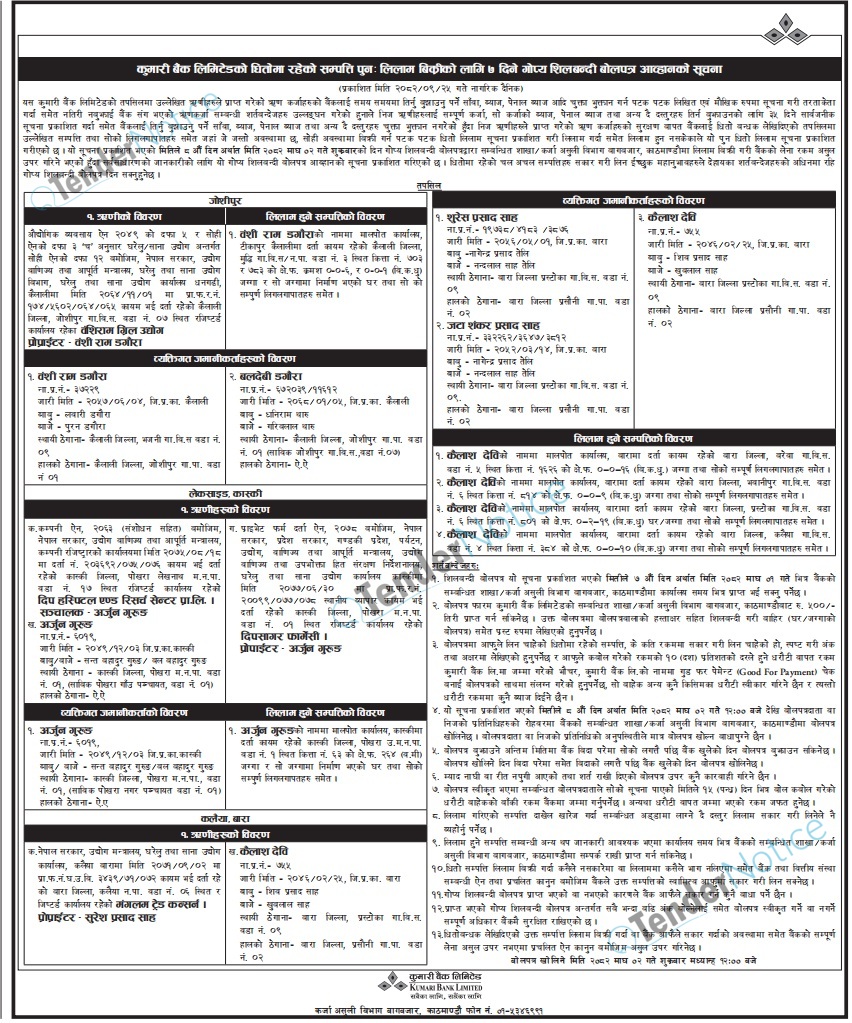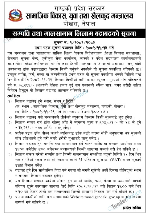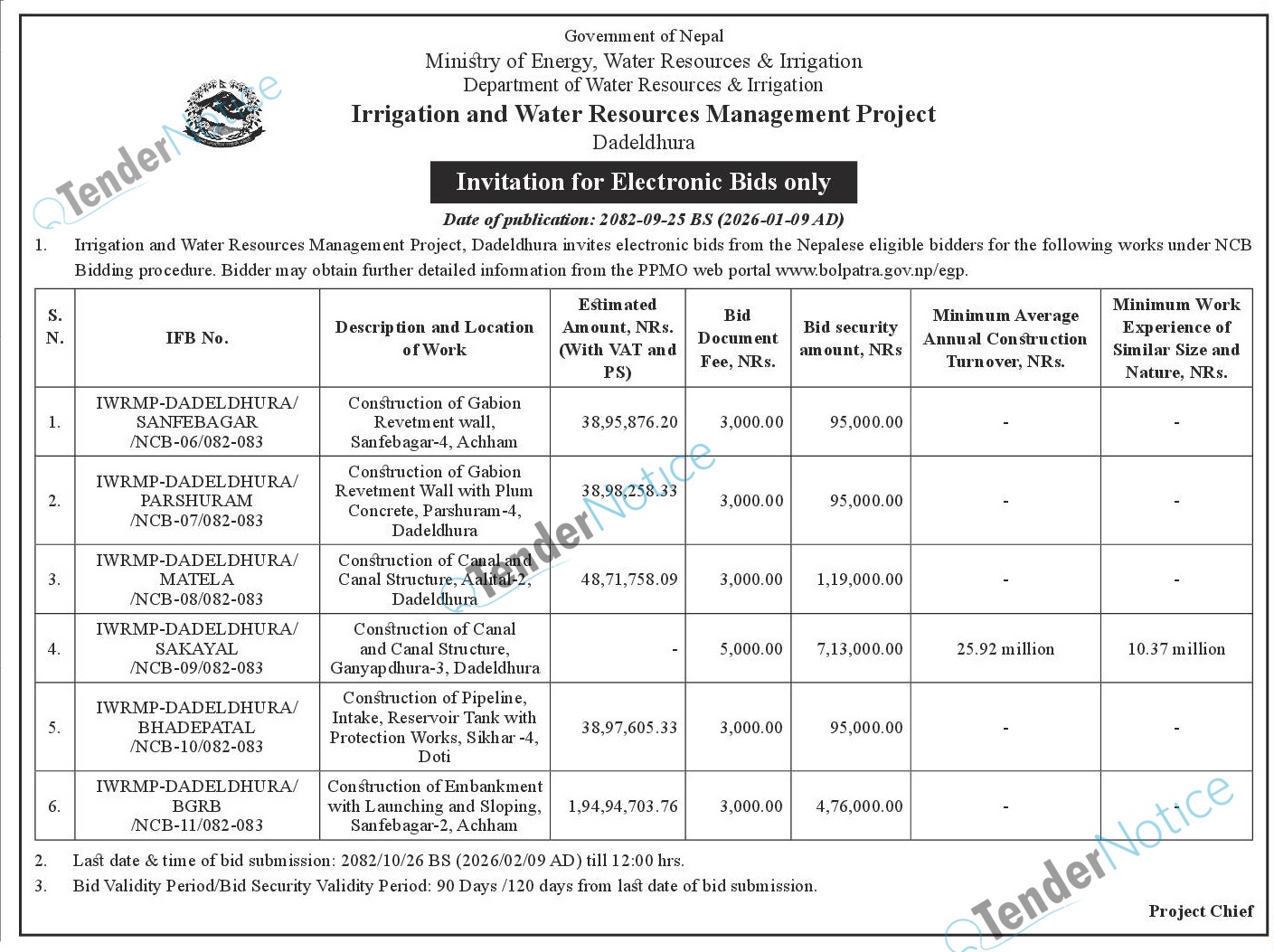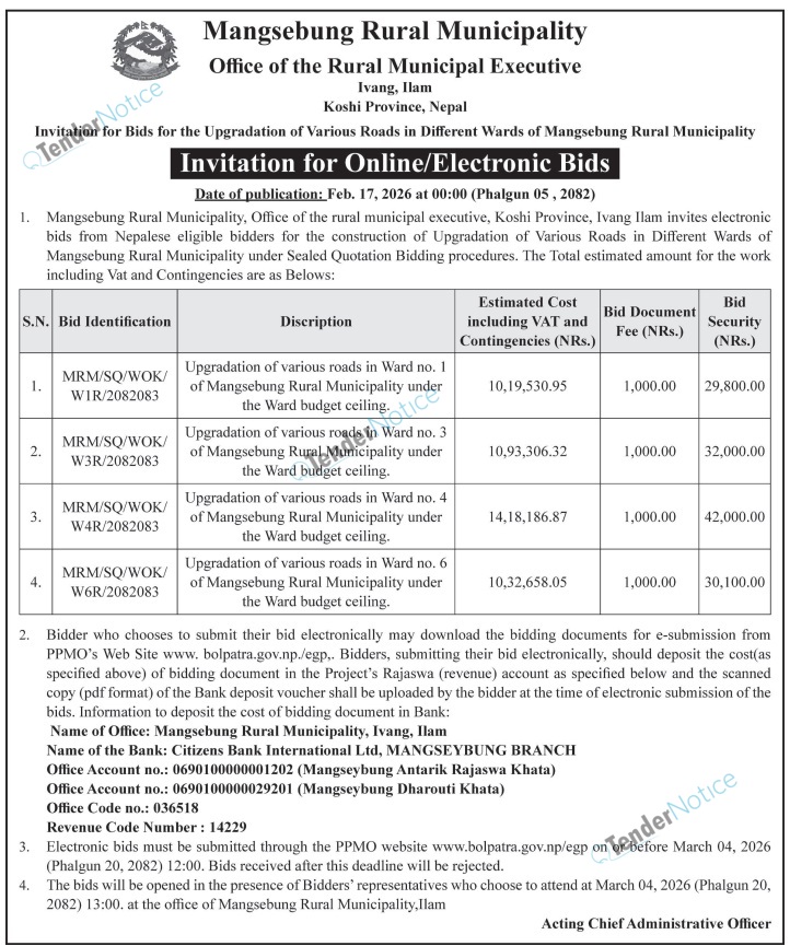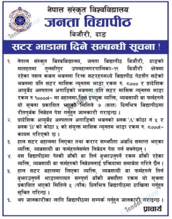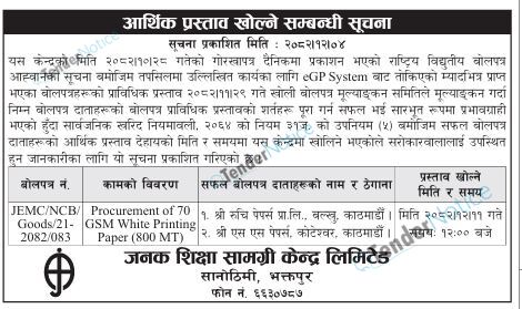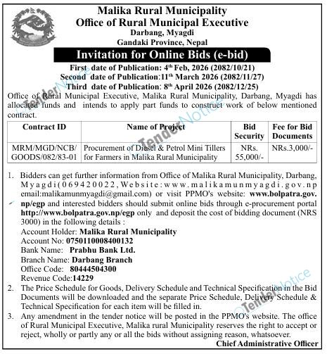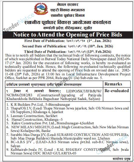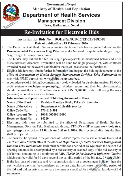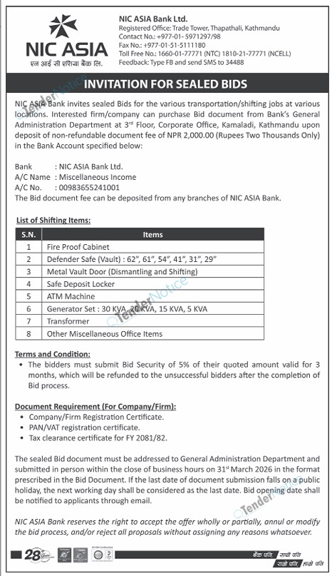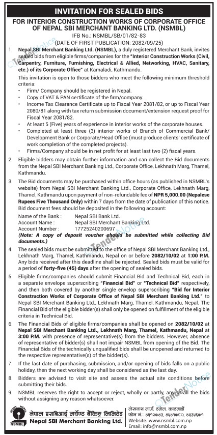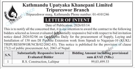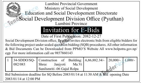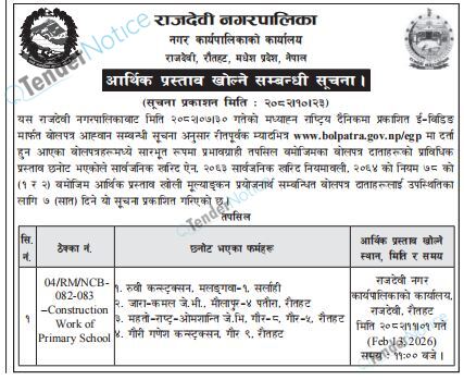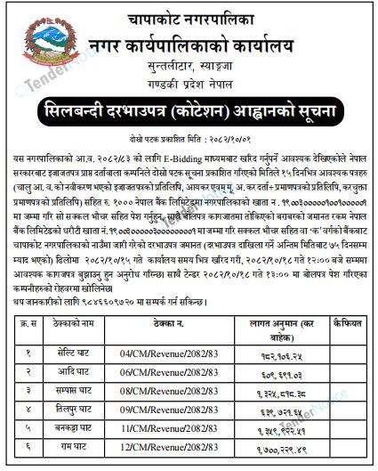 TenderNotice.com.np is one of the key sources of information for online tenders news and information. Those sources include Invitation of Proposal, Quotation, Request For Proposal (RFP) including Technical Proposal and Financial Proposal, Expression of Interest (EOI), Enlistment etc.
