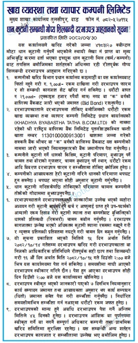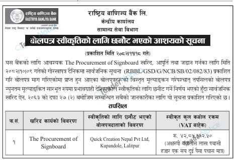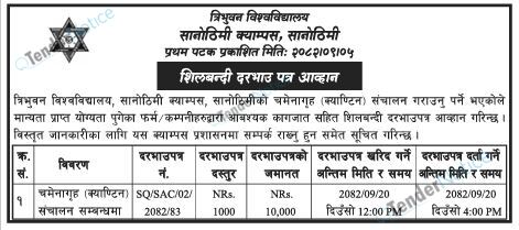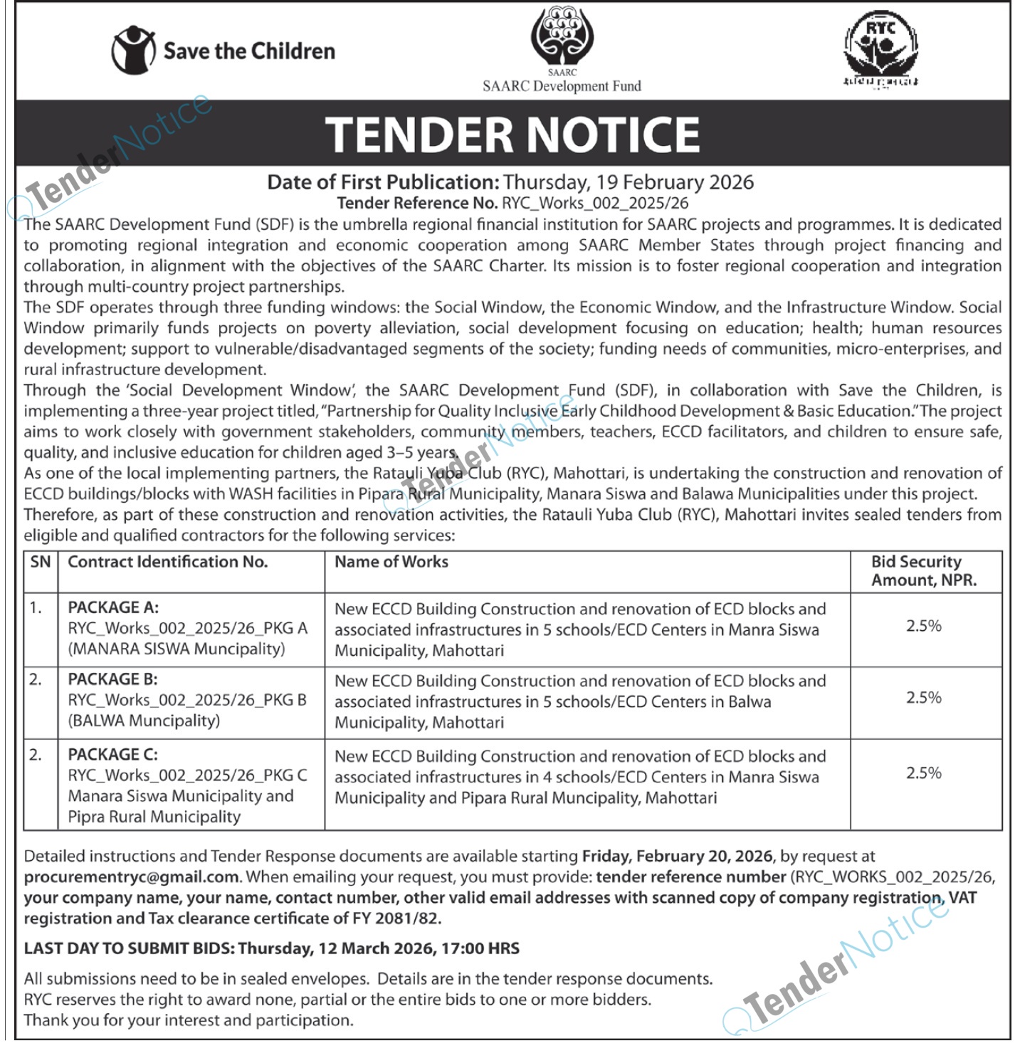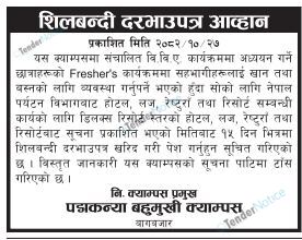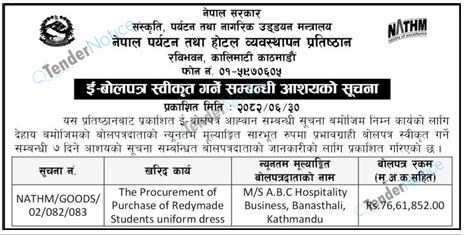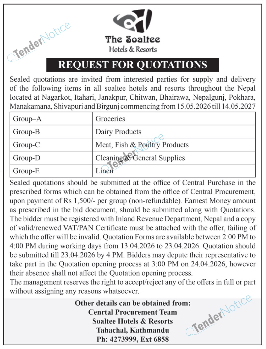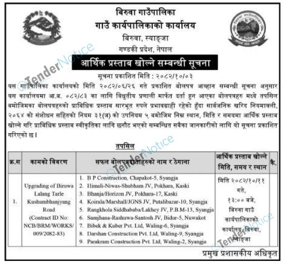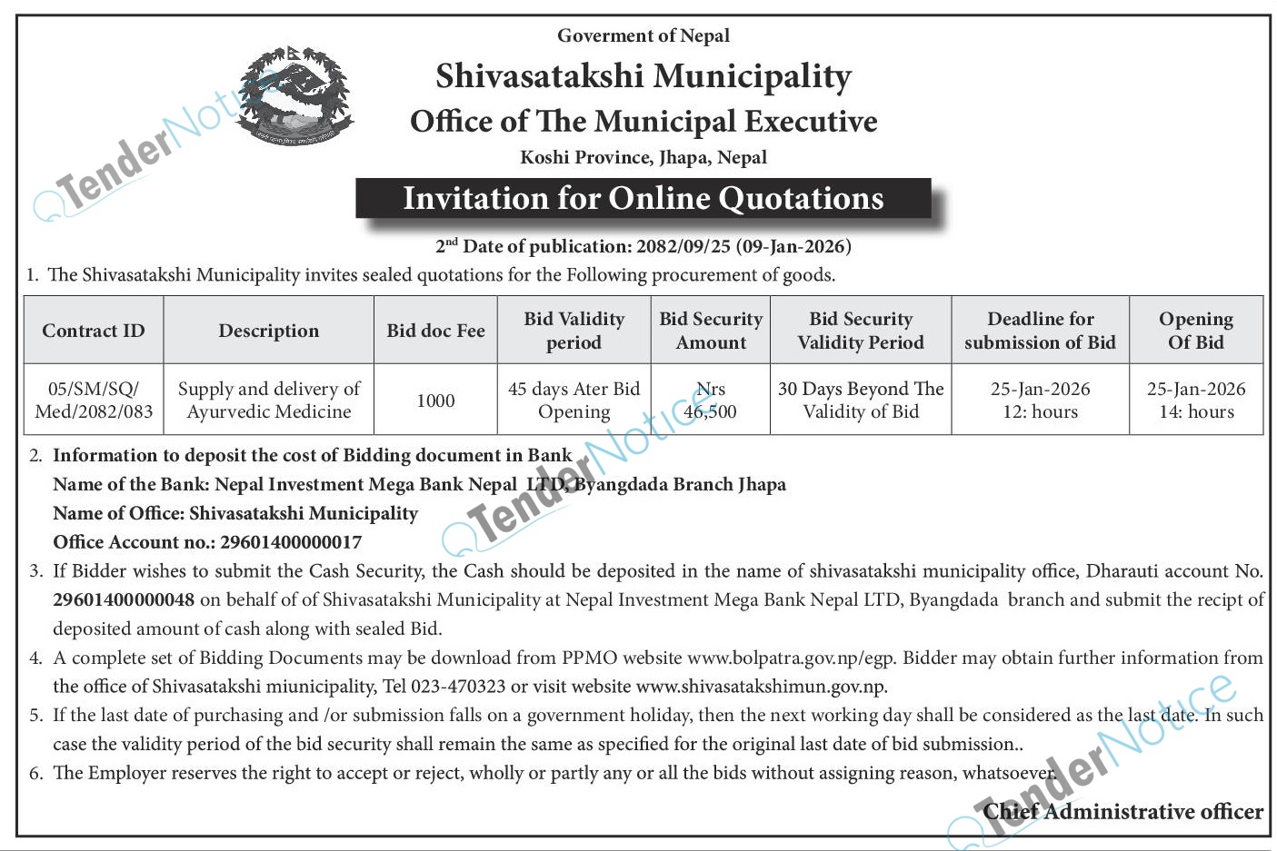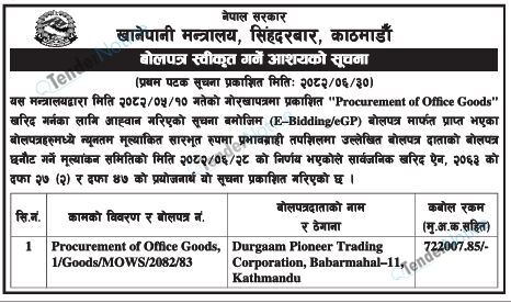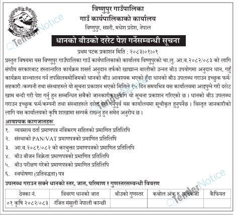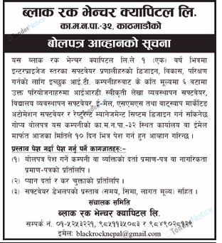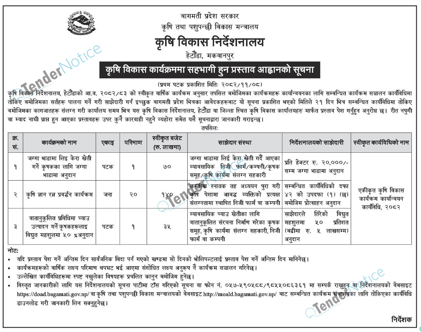 TenderNotice.com.np is one of the key sources of information for online tenders news and information. Those sources include Invitation of Proposal, Quotation, Request For Proposal (RFP) including Technical Proposal and Financial Proposal, Expression of Interest (EOI), Enlistment etc.