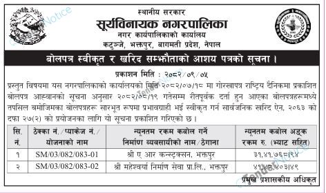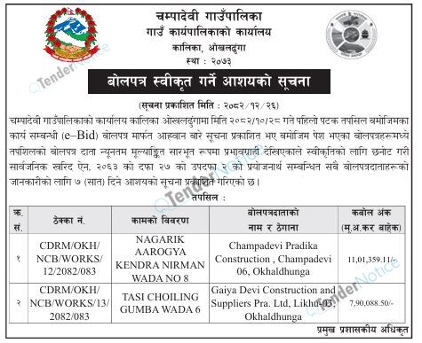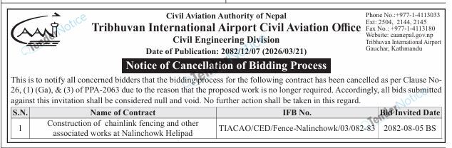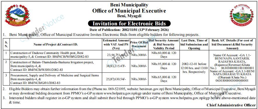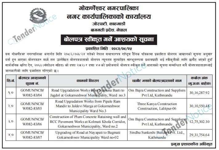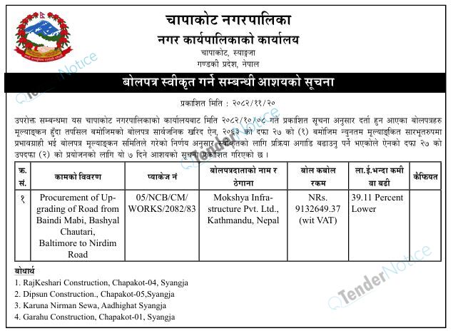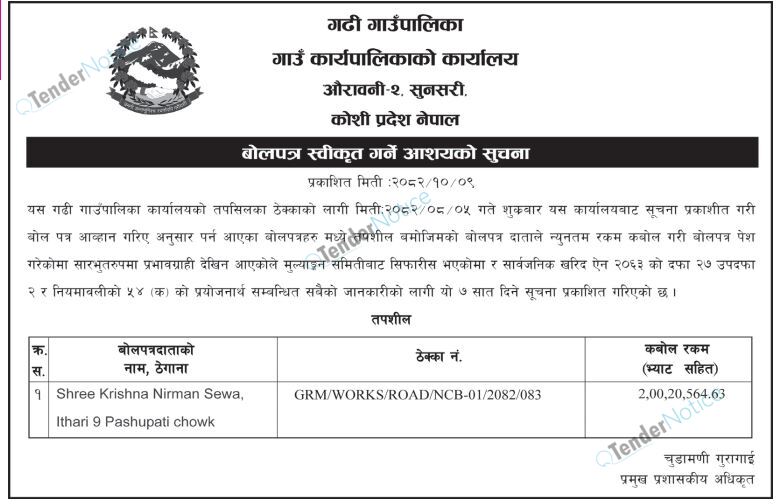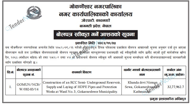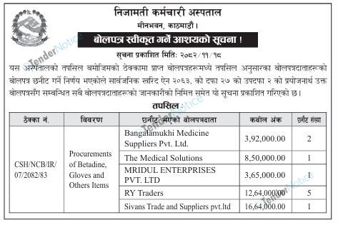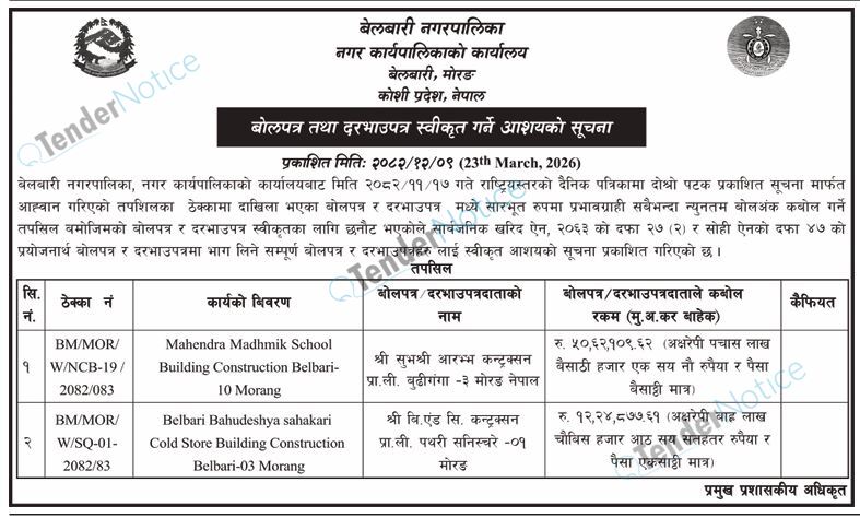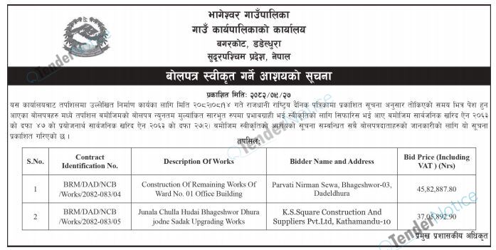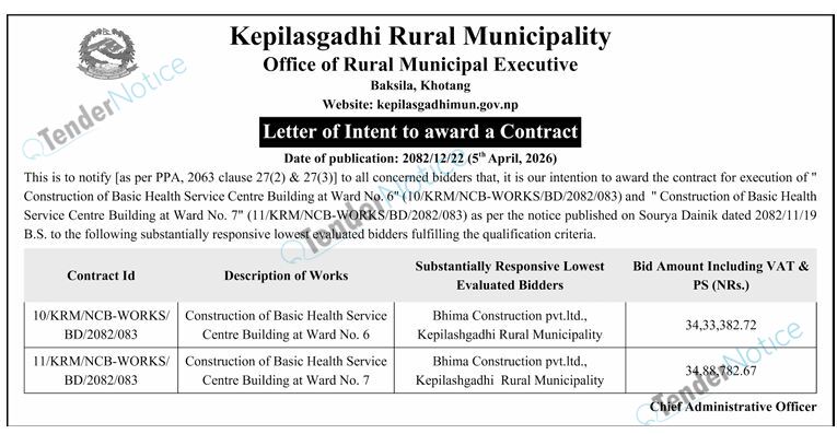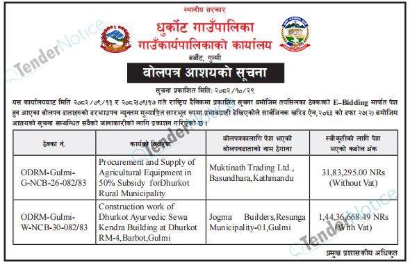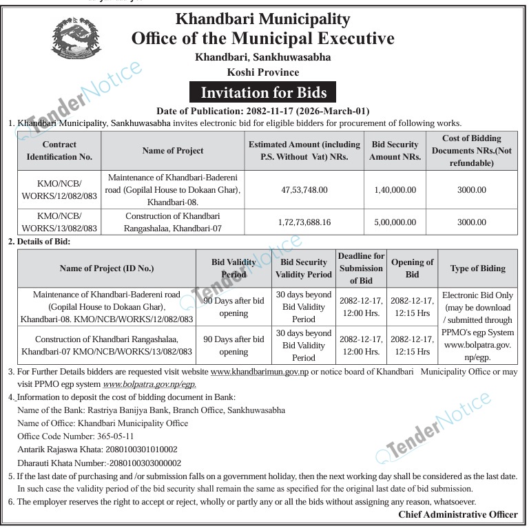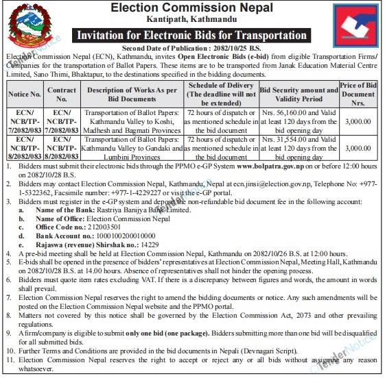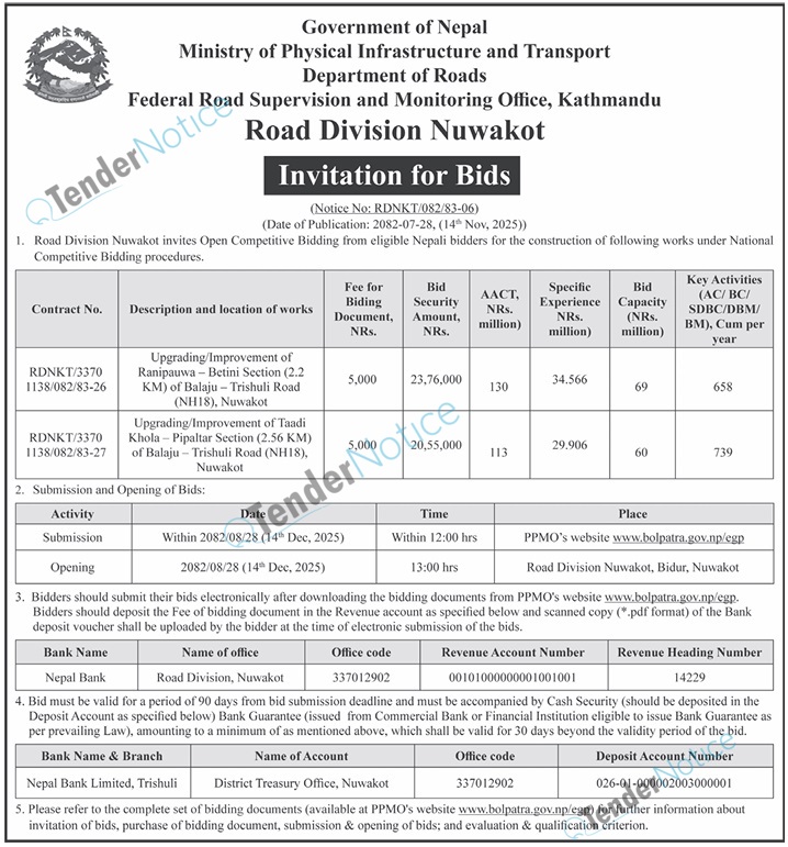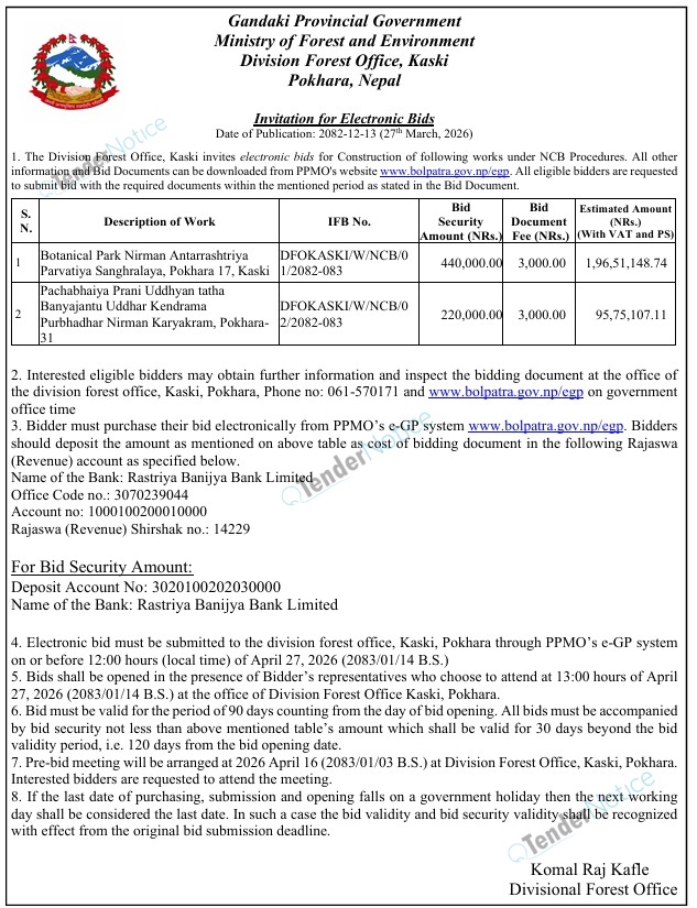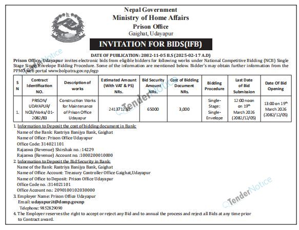 TenderNotice.com.np is one of key informative Tender Sites in Nepal providing all notices, news and information of Bids and Tenders.