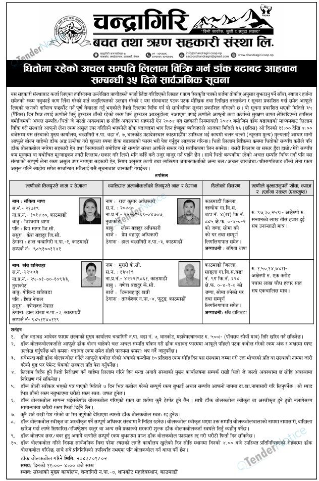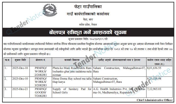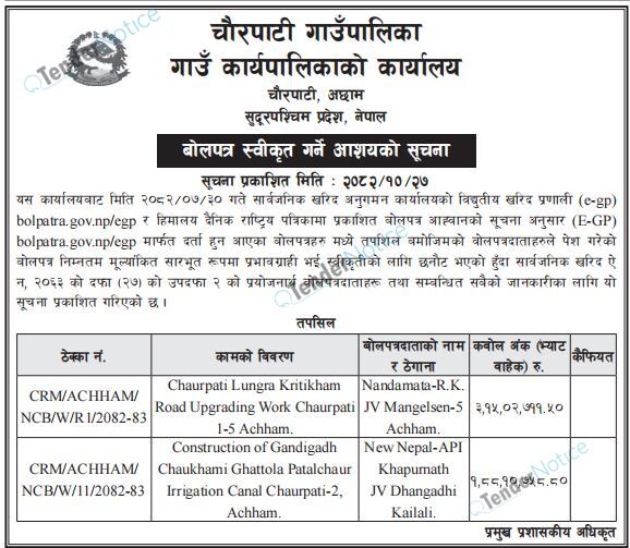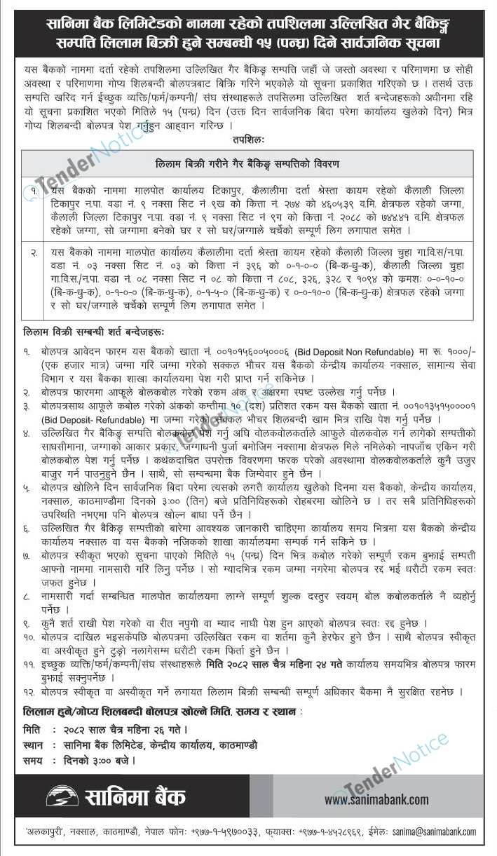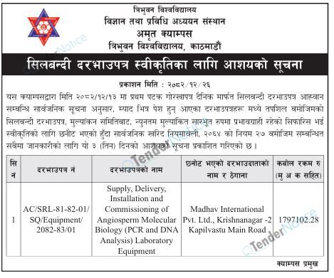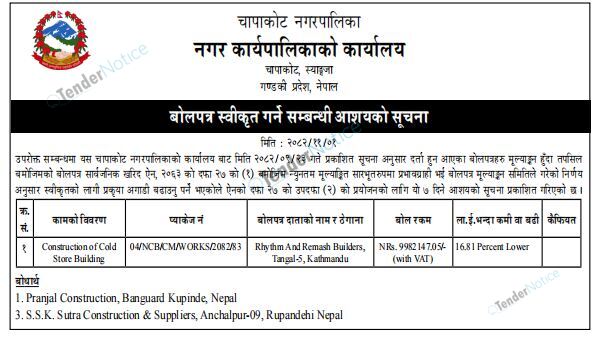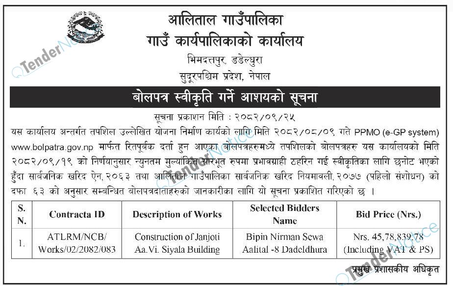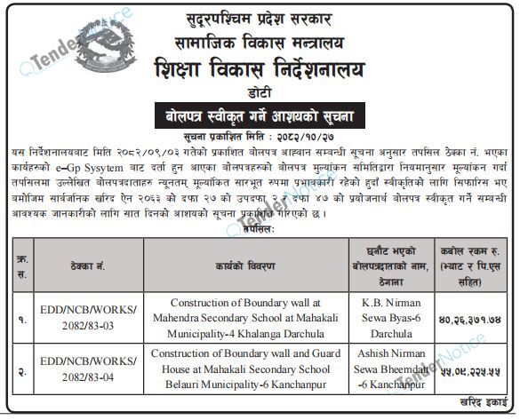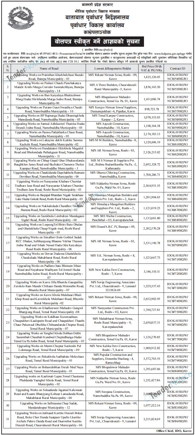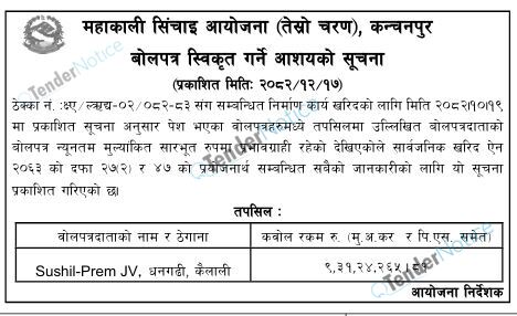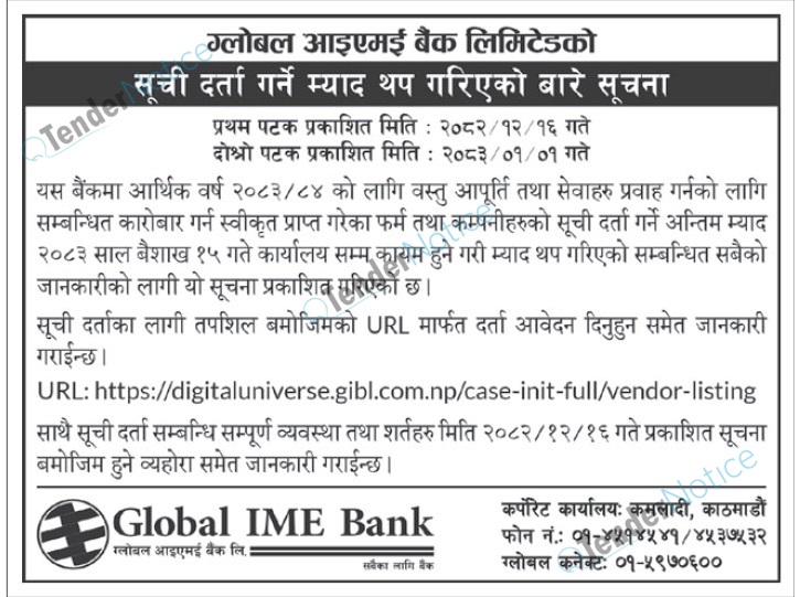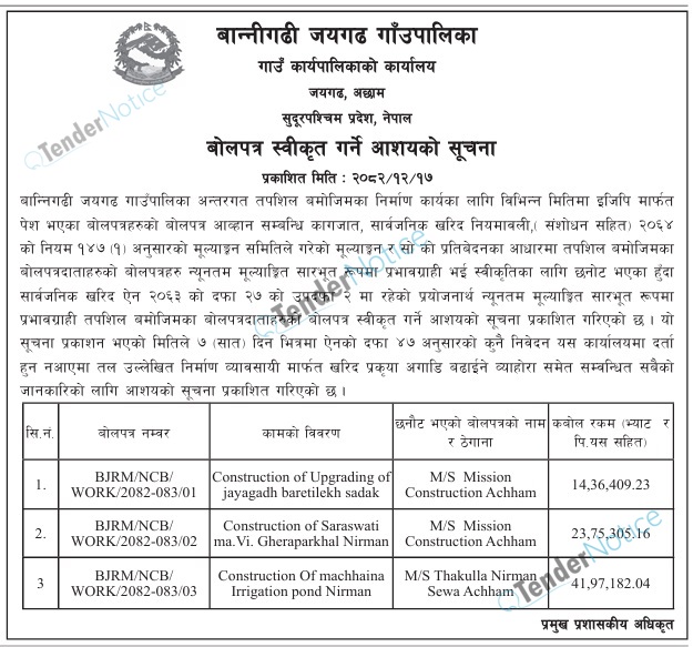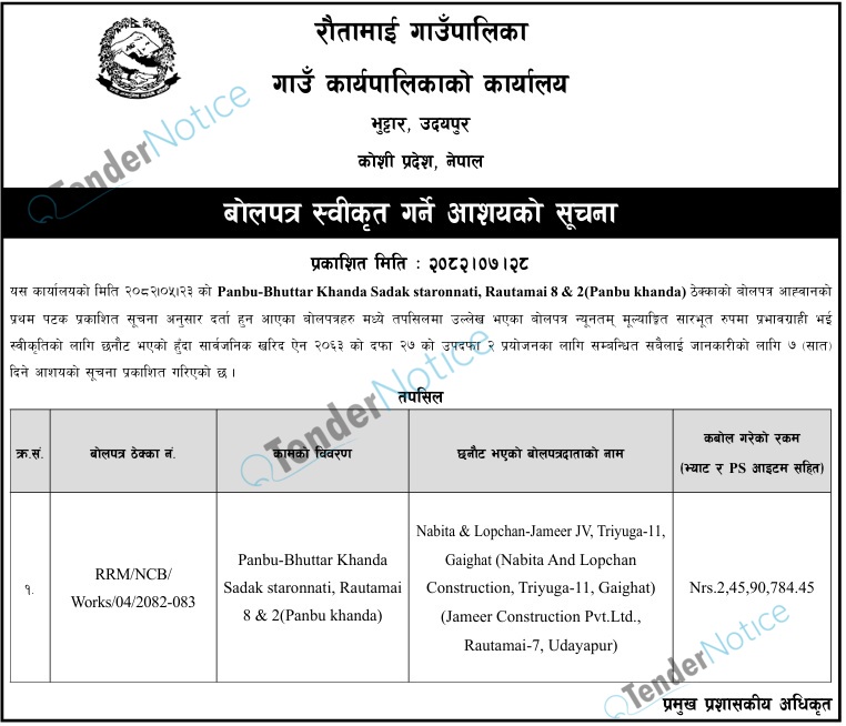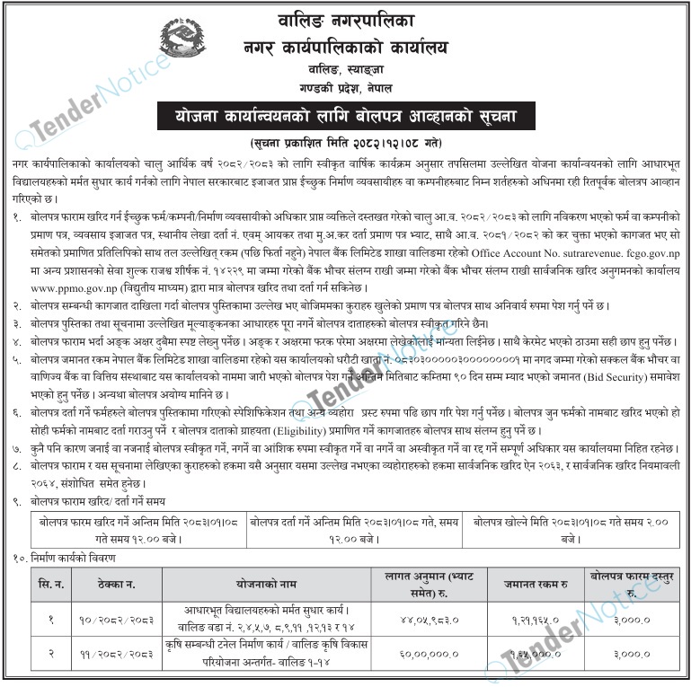 TenderNotice.com.np is one of key informative Tender Sites in Nepal providing all notices, news and information of Bids and Tenders.