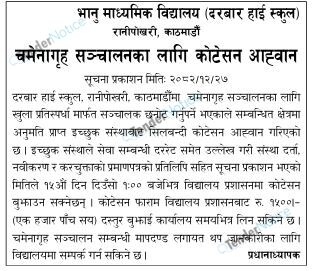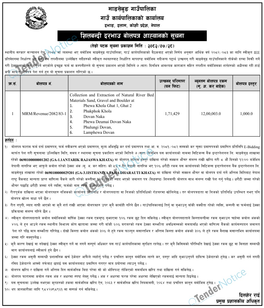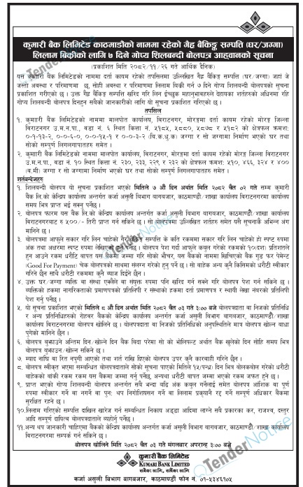 TenderNotice.com.np primarily provides all Bids and Tender notices published in all daily newspaper of Nepal.Tender Notices from Government, Private and Non Government and any other institutions are posted online and the users can access and download tender documents.