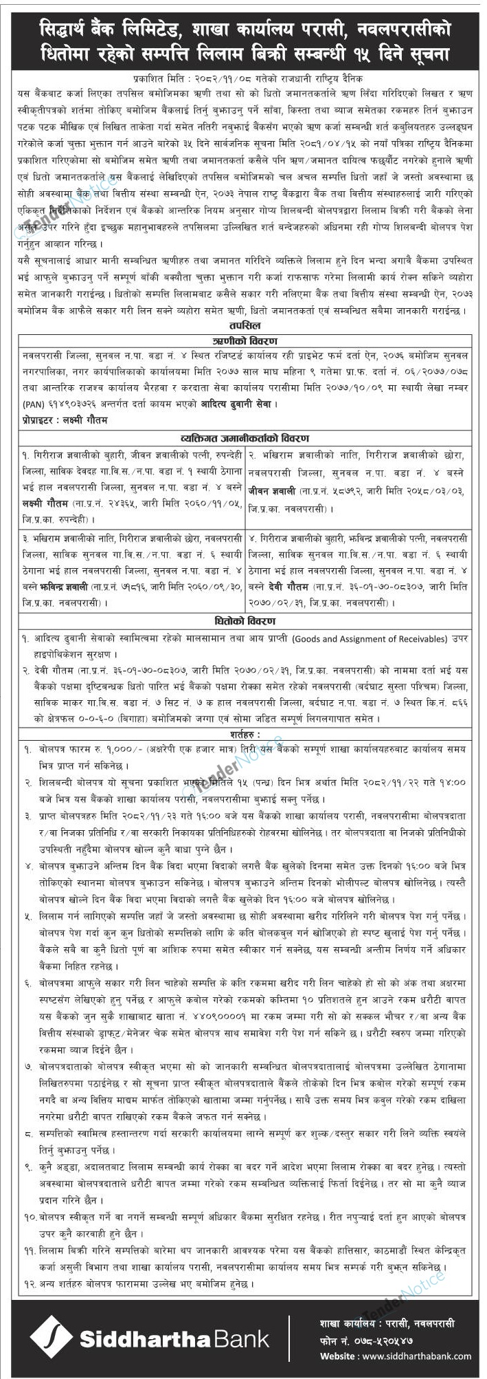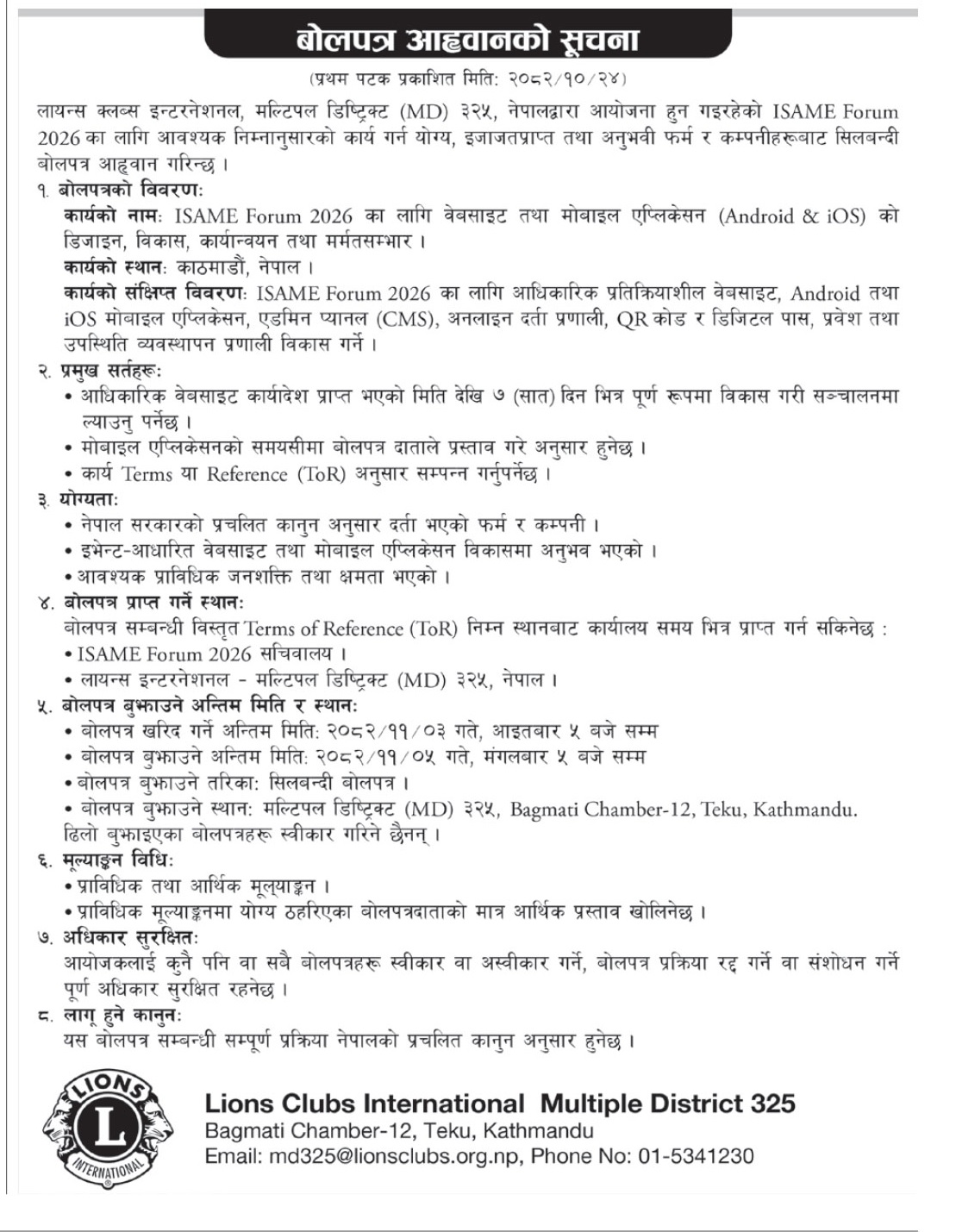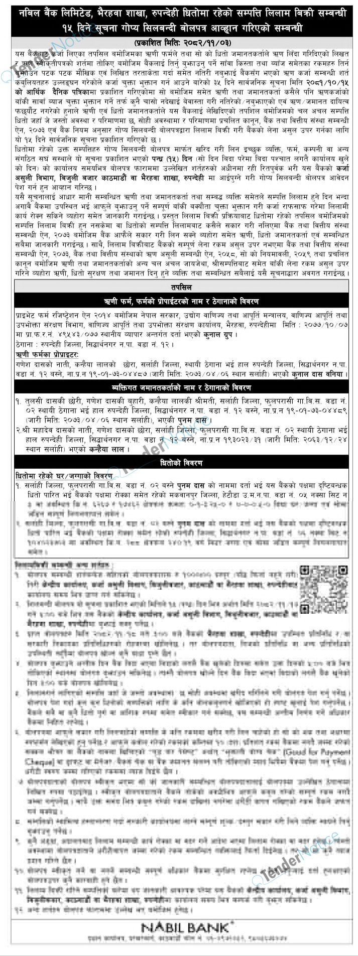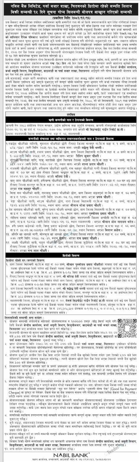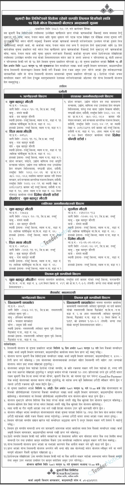 Tendernotice.com.np is an online Bid and Tender Portal Services that helps to manage all bids, tenders and related notices through website. All tender notices published in various newspapers in Nepal are collected and posted in the portal site daily basis. Users can access and download tender documents, receive through their emails right after tender publish and manage bids and tenders completely through online after registration. It simply facilitates and manages all bids and tender process in a simple manner for all users.